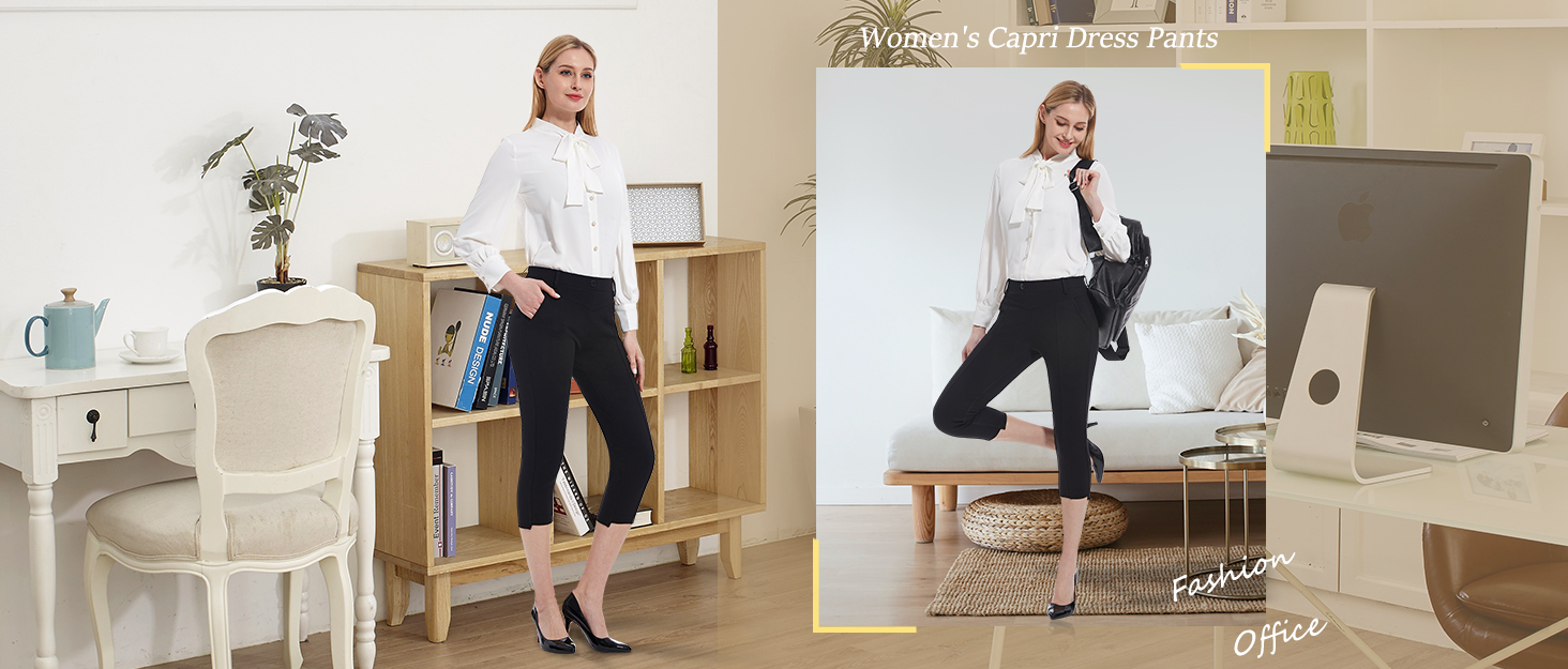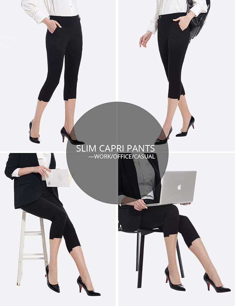 【STRETCHY & SOFT FABRIC】: The summer casual capri pants made from soft fabric, blended with spandex for 4-way stretch, providing all-day comfort while holding its shape. Women's ideal summer office capri pants for daily wear: comfortable, wrinkle-resistant, and non-pilling, which can contours your curves better.