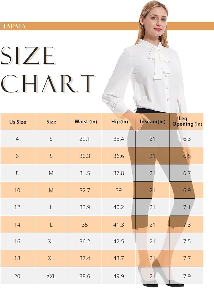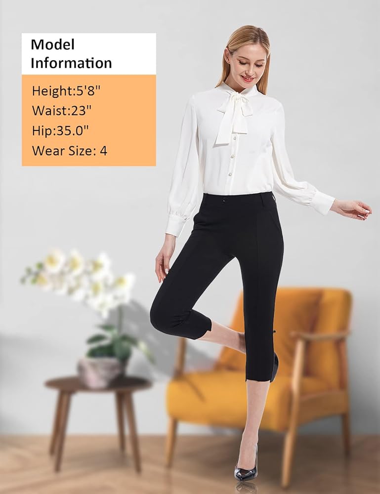 【SLIM CAPRI PANTS】: This slim capri dress pants are available in sizes 4/6/8/10/12/14/16/18/20. Our model is 5'8" wearing size 4. Please refer to our size chart to choose your suitable size.