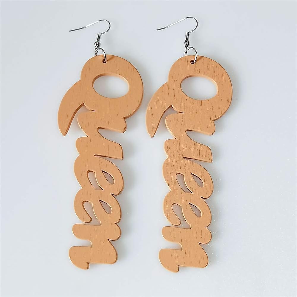 Women's Afrocentric African Text Wood Dangle Pierced Earrings
