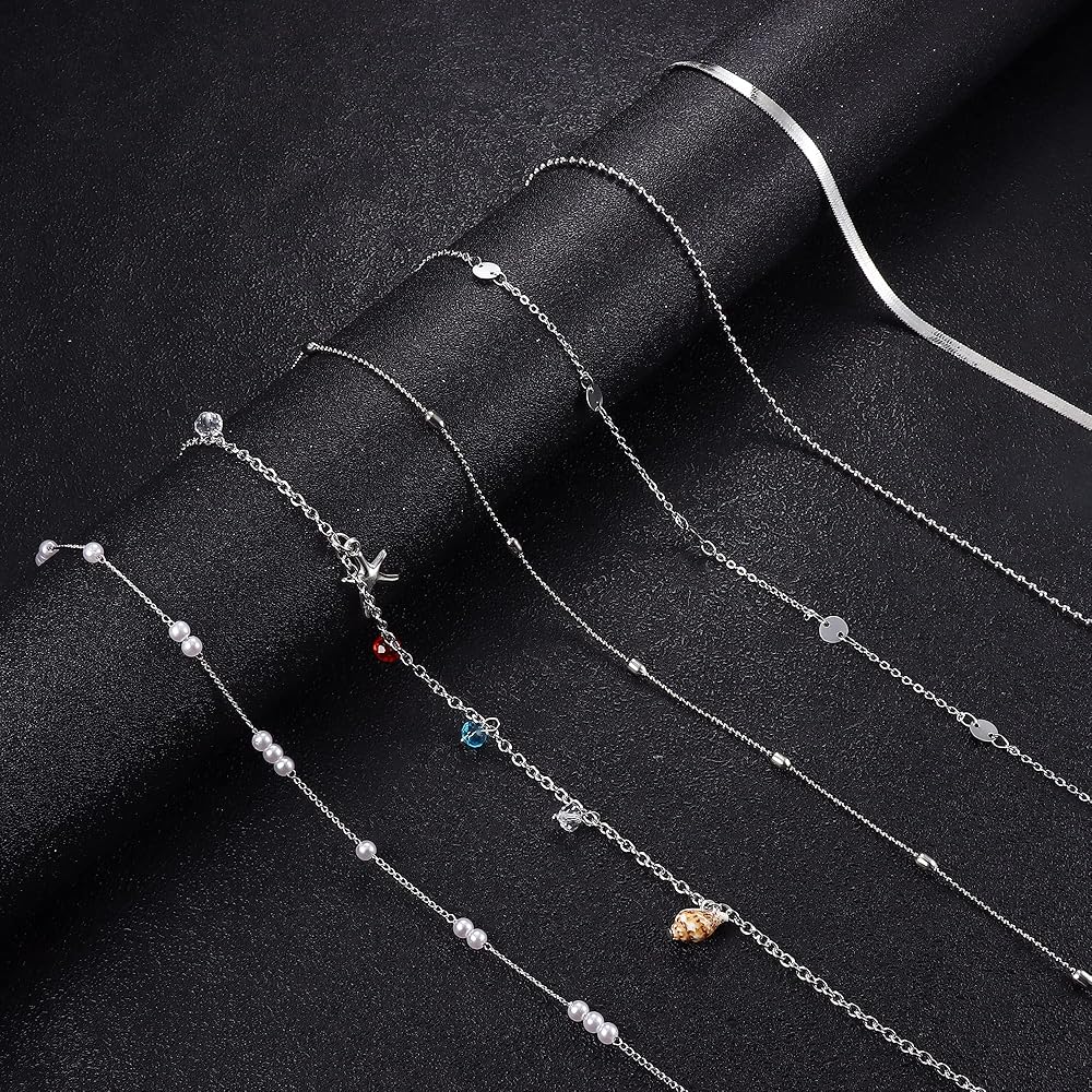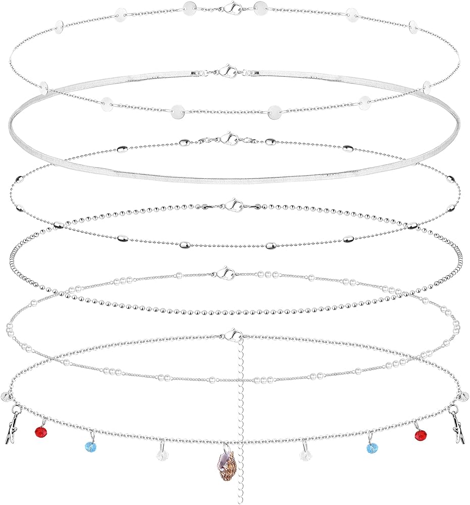 سلاسل خصر مثيرة: عبوة واحدة تحتوي على 6 قطع من سلاسل الخصر البسيطة بأنماط مختلفة، بما في ذلك سلاسل الخصر على شكل سلسلة ثعبان، وسلاسل الخصر على شكل قرص، وسلاسل خصر مطرزة، وسلسلة خصر على شكل صدفة، وسلاسل خصر لؤلؤية والمزيد. يمكن أن تتناسب سلاسل الجسم المختلفة ذات الأنماط المختلفة مع ملابسك اليومية وإبراز جسمك المثالي.