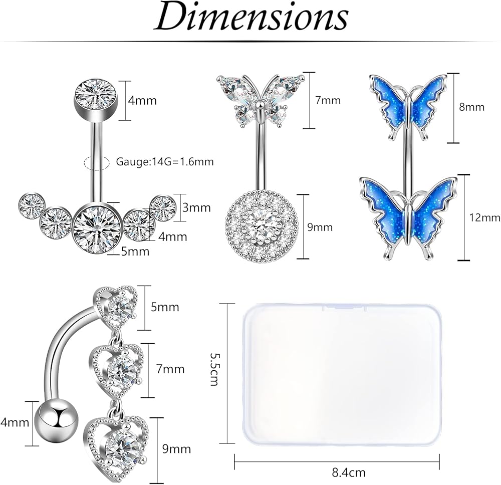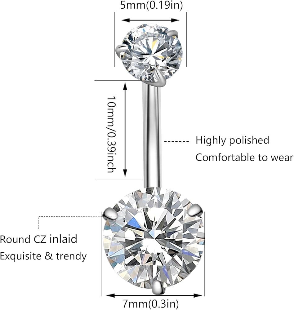 المقاس - مجوهرات ثقب البطن سميكة 14 غرام (1.6 ملم). تم تصميم حلقة البطن بمقاس شائع لحلقة البطن، كما أن مقاس حلقة البطن يناسب جميع البالغين، سهل الفك والتركيب.