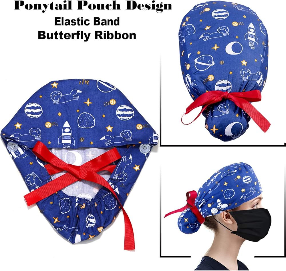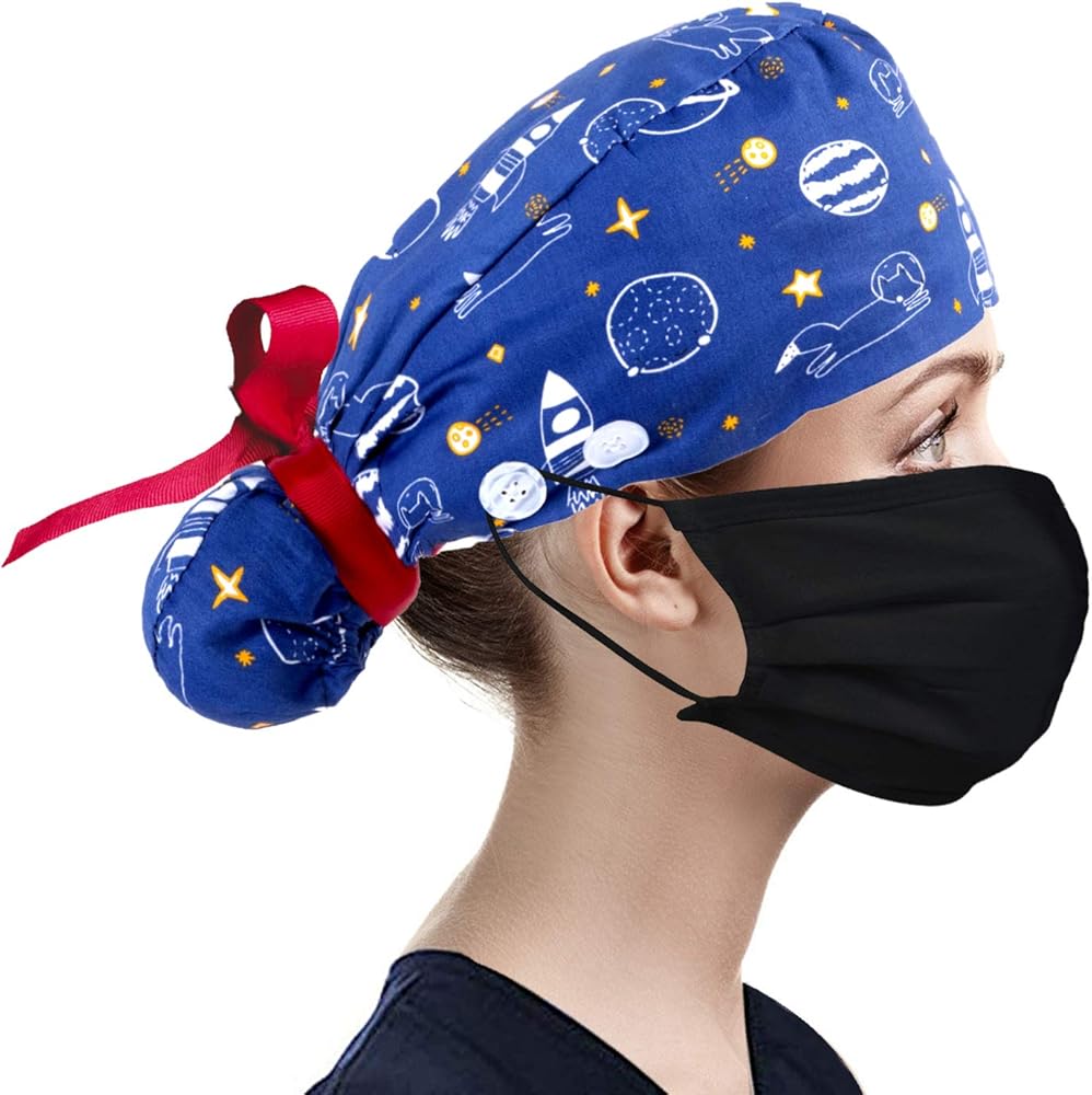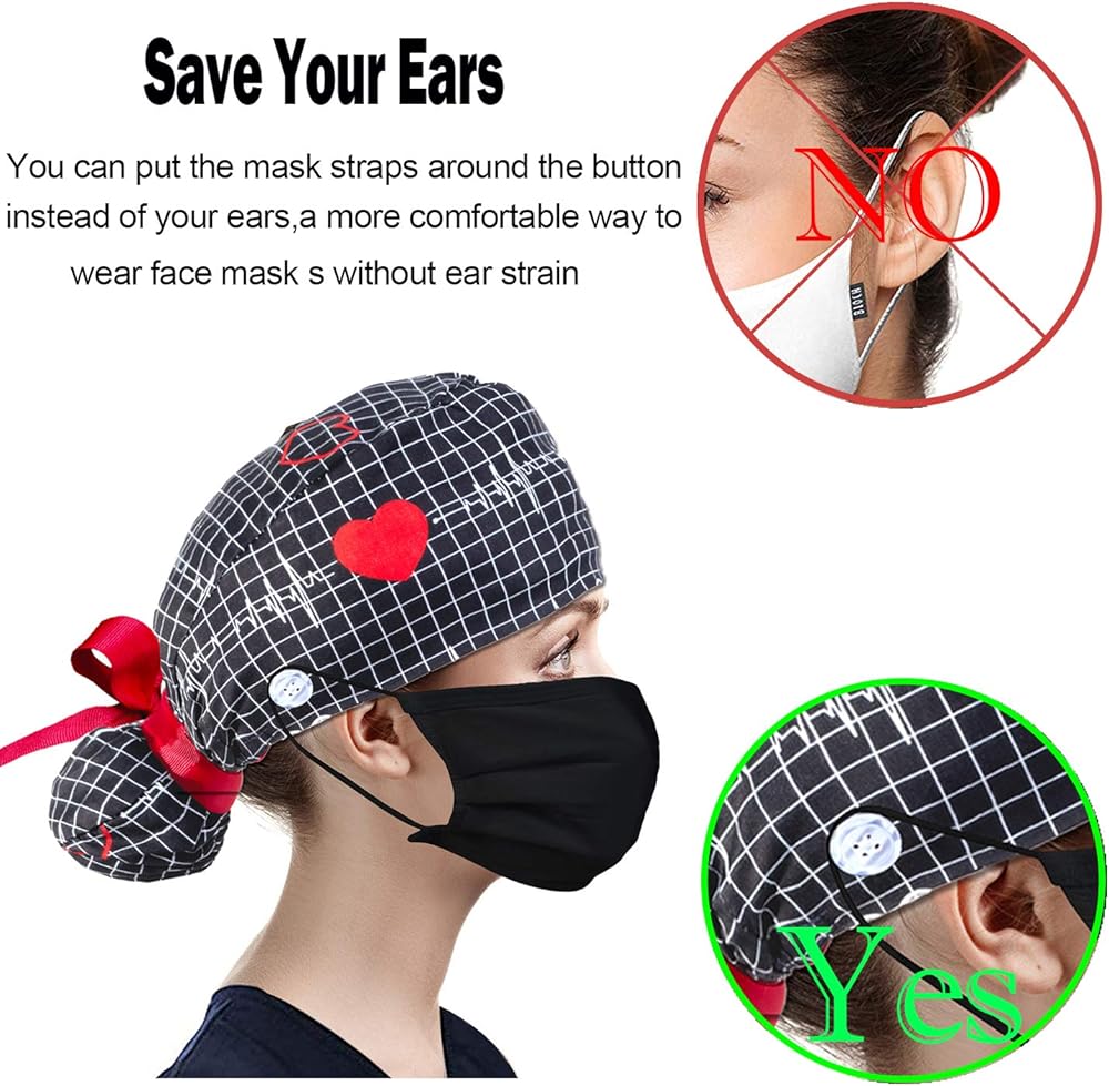 • 【تصميم حقيبة ذيل الحصان والأزرار]】للشعر الطويل، تساعدك حقيبة ذيل الحصان على ضبط شعرك، وتجعلك تبدين احترافية ونشيطة. باستخدام الزر الموجود حول جانب الأذن، يمكنك تجنب أشرطة الأقنعة التي تجعل أذنيك تؤلمك أو تجاعيد الوجه.