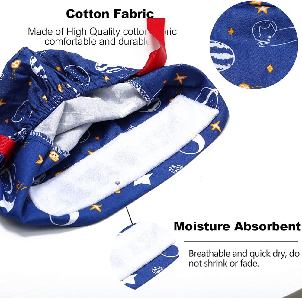 • 【خامة ممتازة وتعديل】 نسيج قطني عالي الجودة بنسبة 100%، خفيف ومريح وجيد التهوية. تحتوي القبعات المنتفخة ذات التصميم المقشر على شريط مطاطي وأربطة في الظهر يمكن ارتداؤها بطريقتين: ربطها بشكل فضفاض في الخلف أو ربطها على شكل ذيل حصان. مقاس واحد يمكن أن يناسب الجميع.