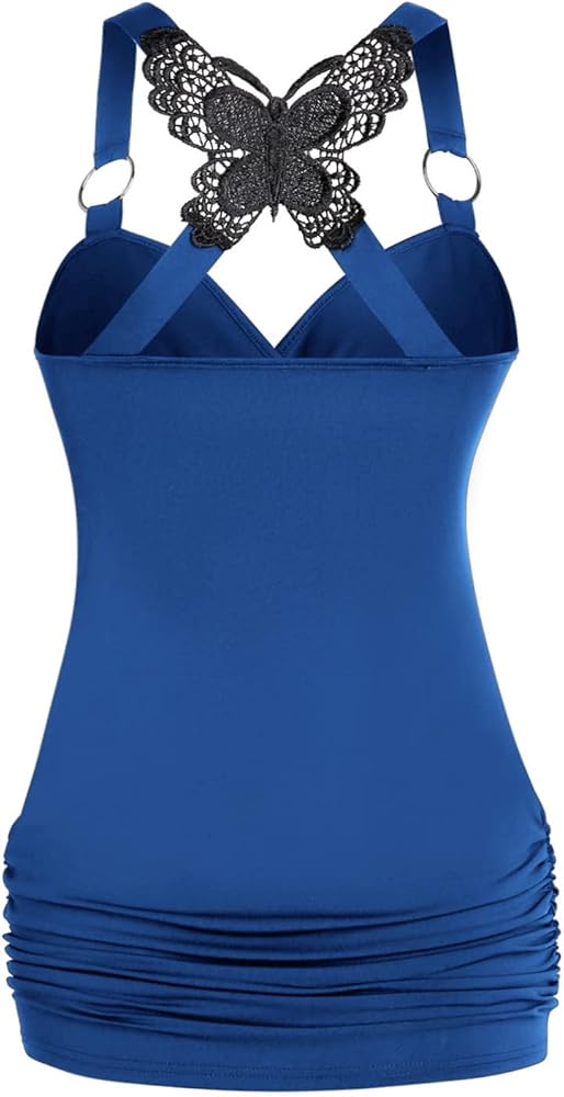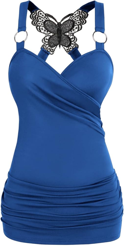 【النمط 1--قمصان بدون أكمام للسيدات مثيرة】تتميز القمصان اللطيفة بدون أكمام برقبة على شكل حرف V، وحزام سباجيتي، وتصميم مكشكش بيبلوم، بدون ظهر، بدون أكمام، والذي يظهر التصميم مظهرًا أنيقًا أنحف. الخصر مطوي لجعل القميص بدون أكمام ذو حزام السباغيتي أكثر ملاءمة لشكل جسمك. حشوة من الدانتيل على شكل فراشة، وأشرطة على شكل حرف O، وتصميم رقبة على شكل حرف V surplice يخلق مظهرًا رائعًا وأنيقًا ومريحًا على هذا القميص بدون أكمام.
