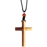 This is a handmade wooden cross necklace made from 2 pieces of solid natural wood with adjustable length on the cord.