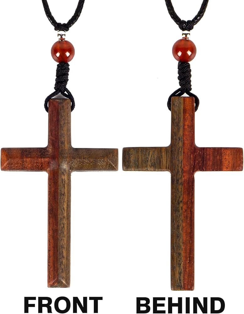 -Our wooden cross necklaces are available in a variety of styles, each style contains two types of wood, namely Ebony & Rosewood, Rosewood & Boxwood, Rosewood & Green Sandalwood, Ebony & Boxwood. Each cross measures 48x30x7 mm (1.89x1.18x0.28 inches).