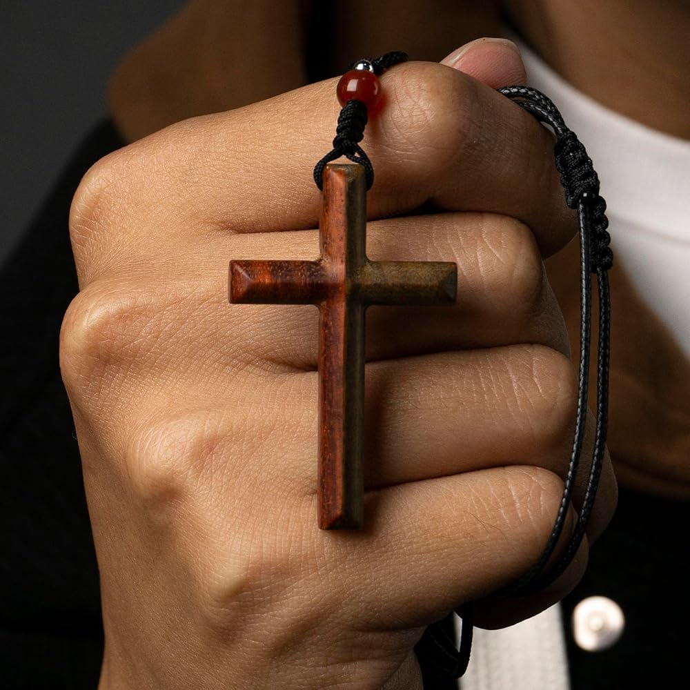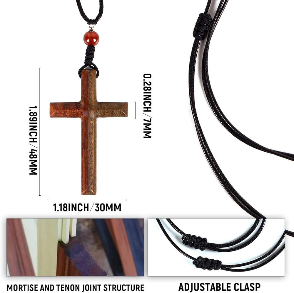 • Perfect For Anyone - Our wooden cross necklace is suitable for all genders and ages. The size of the cross is 48x30x7 mm (1.89x1.18x0.30 inches), small and lightweight, and the rope part is equipped with an adjustable telescopic buckle, making it more convenient and comfortable to wear. Whether you're attending a social event, a religious ceremony or just spending the day, it will match your outfit.