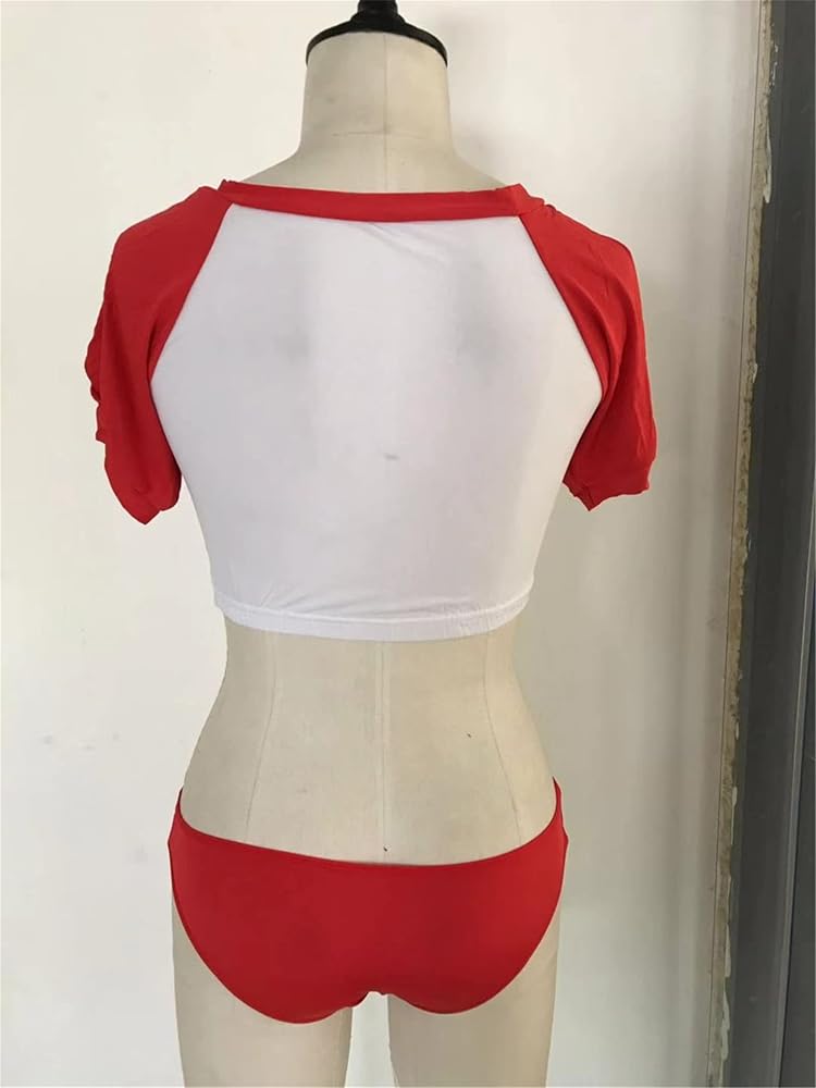 Style: Simple fission top and pantie style,theT-shirt bikini top, round neck, with contrasting details on the neck and cuffs, combing your inner tomboy. Perfect match with your favorite high waist denim