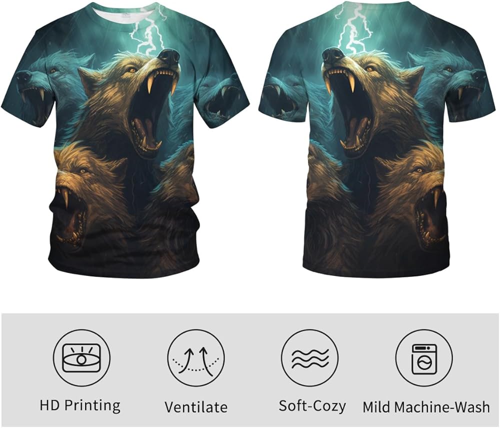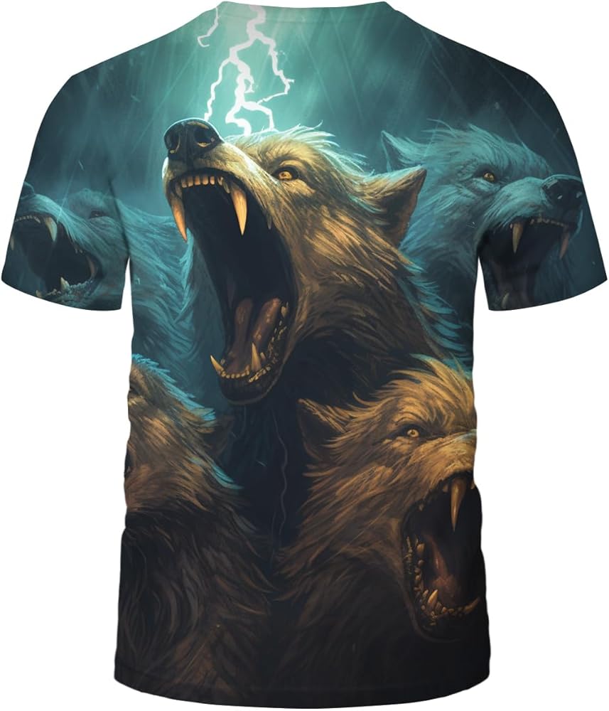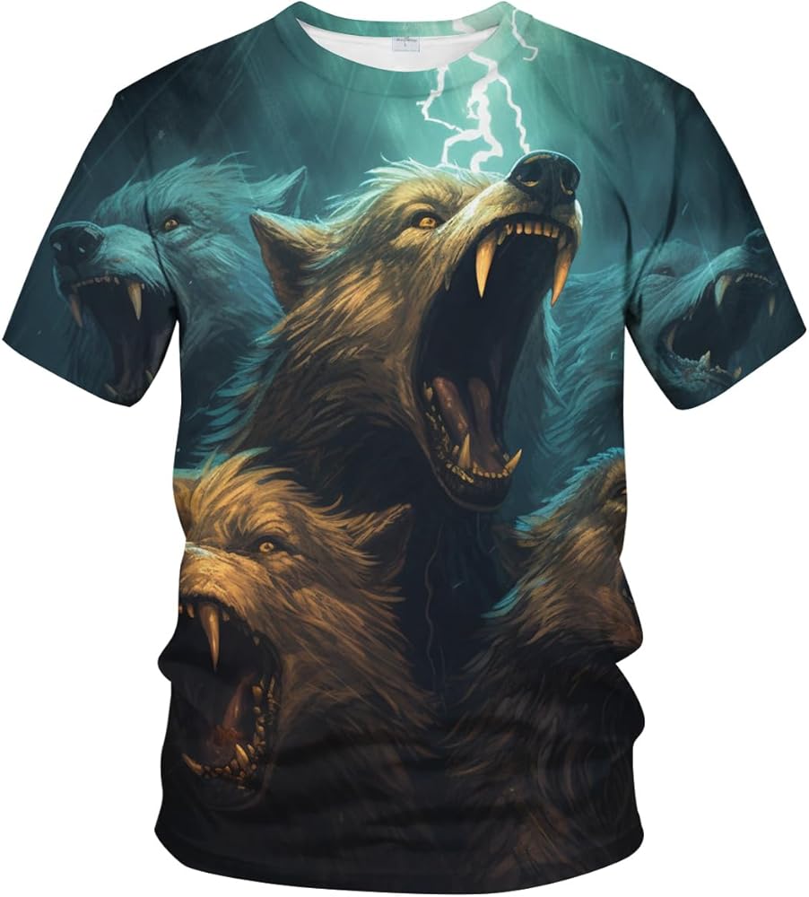 Srcnhim 3D Print Animal Tee Men Casual Classic Wolf Round Neck Shirt T-shirts