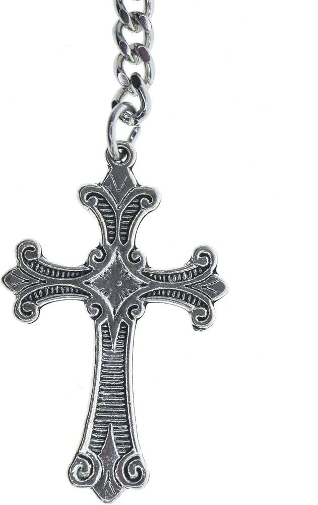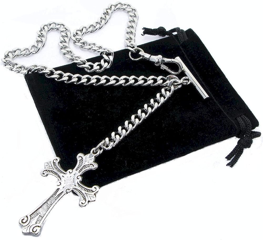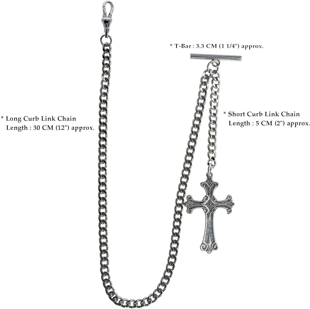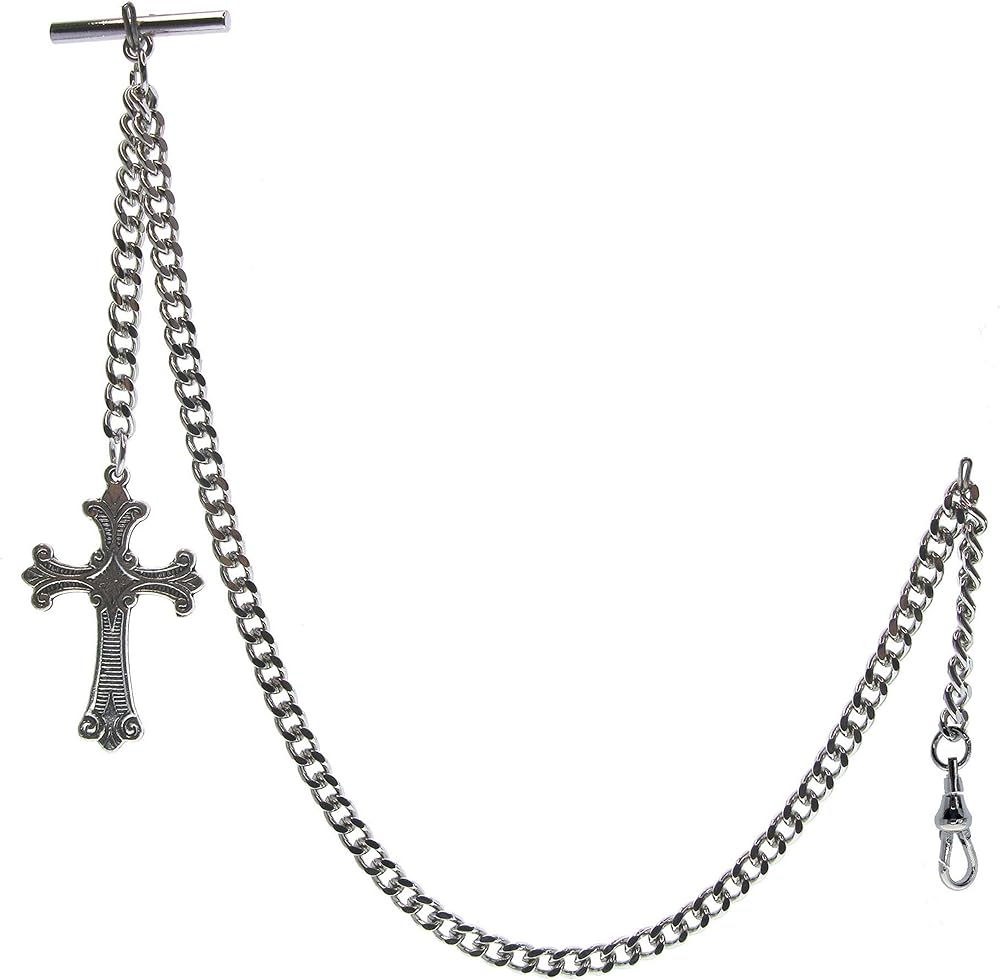 سلسلة ساعة جيب فضية من البرت بتصميم متقاطع ديني ومشبك دوار على شكل حرف T AC114A, لون فضي