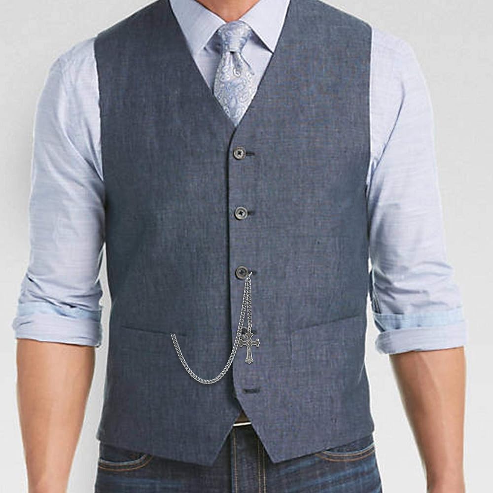 • سلسلة ألبرت جديدة كليًا بنسبة 100% بلون فضي مع شريط على شكل حرف T ومشبك دوار + تصميم متقاطع ديني