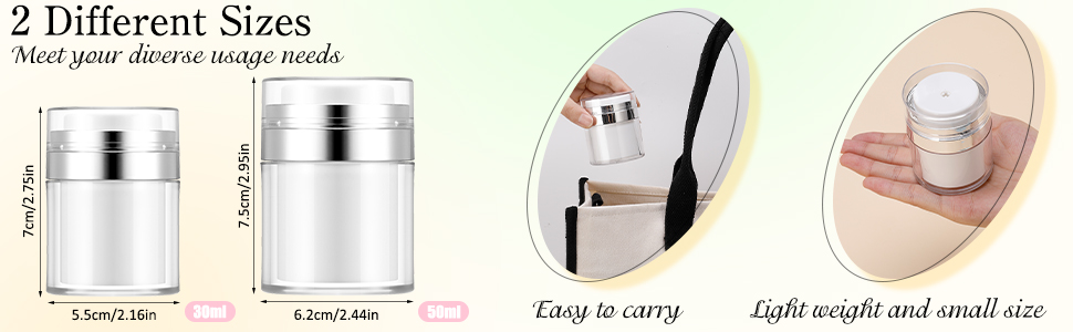 Wide Application: These cream containers are small in size, convenient to use and don't take up much space, Idear for dispensing eye remover creams,foundation,serums,moisturizer and sunscreen.30ml/50ml,lightweight and portable perfect for travel.