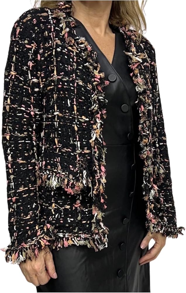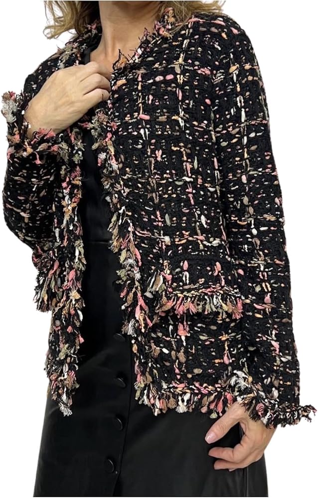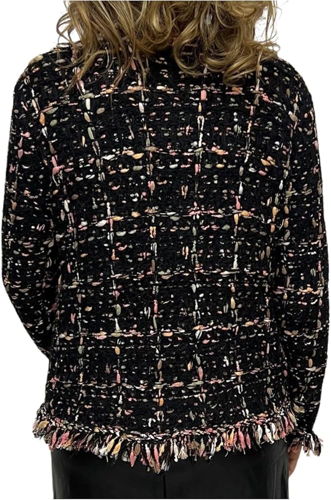 Embrace the blend of classic sophistication and modern style with the CAPPUCCINI Women's Tweed Style Knitted Cardigan, a comfortable and fashionable layering piece that effortlessly combines timeless elegance with contemporary flair.