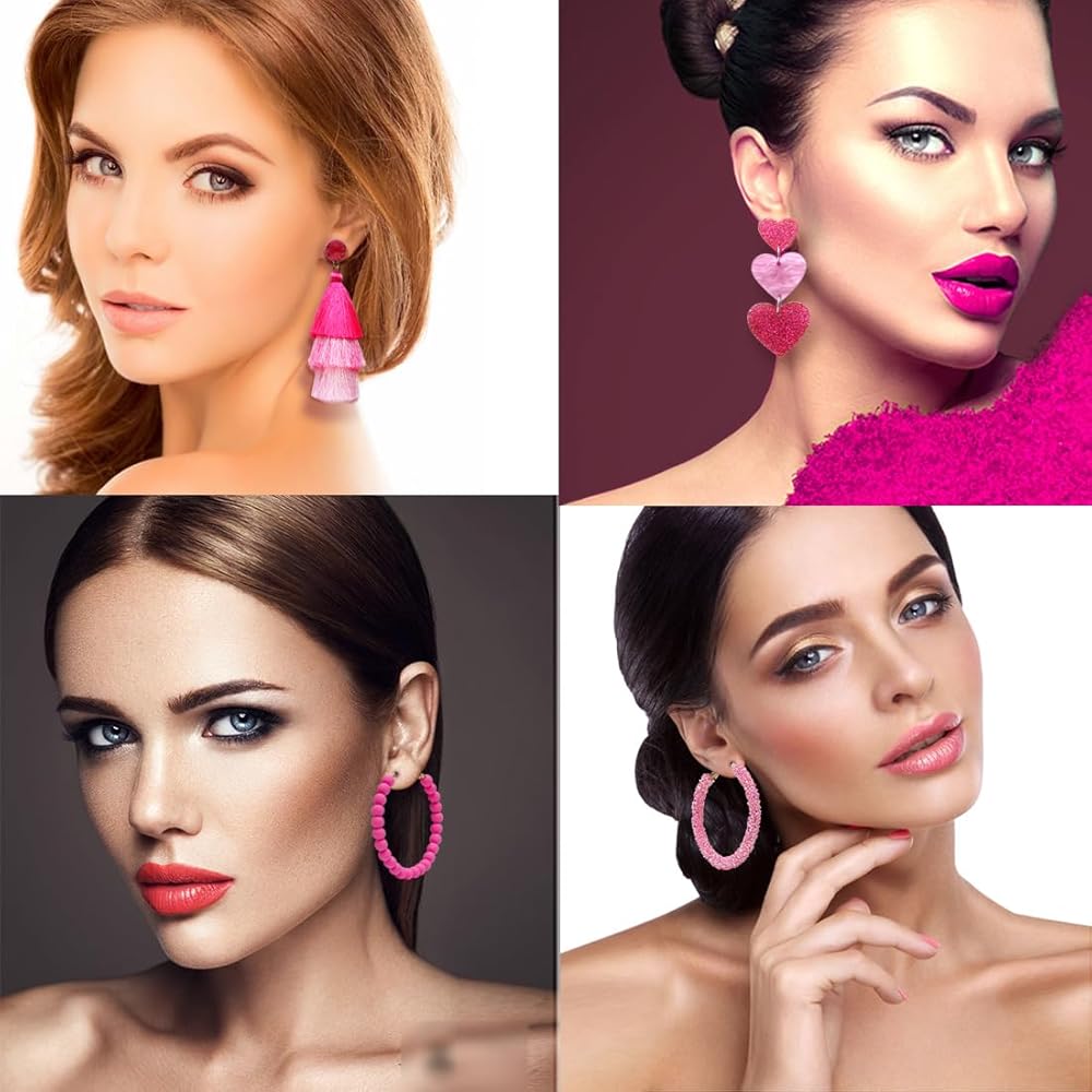 Each of the hot pink statement earring sets has a unique style, whether the sweet and cool heart and flower Dangling earrings, or the airy and elegant tassel and long rose petal Drop Dangle earrings, both fancy colors and complementary shapes. Suitable for different face shapes such as oval face, round face, heart-shaped face and long face, they always bring a different look and fashion sense if you dare to try them.