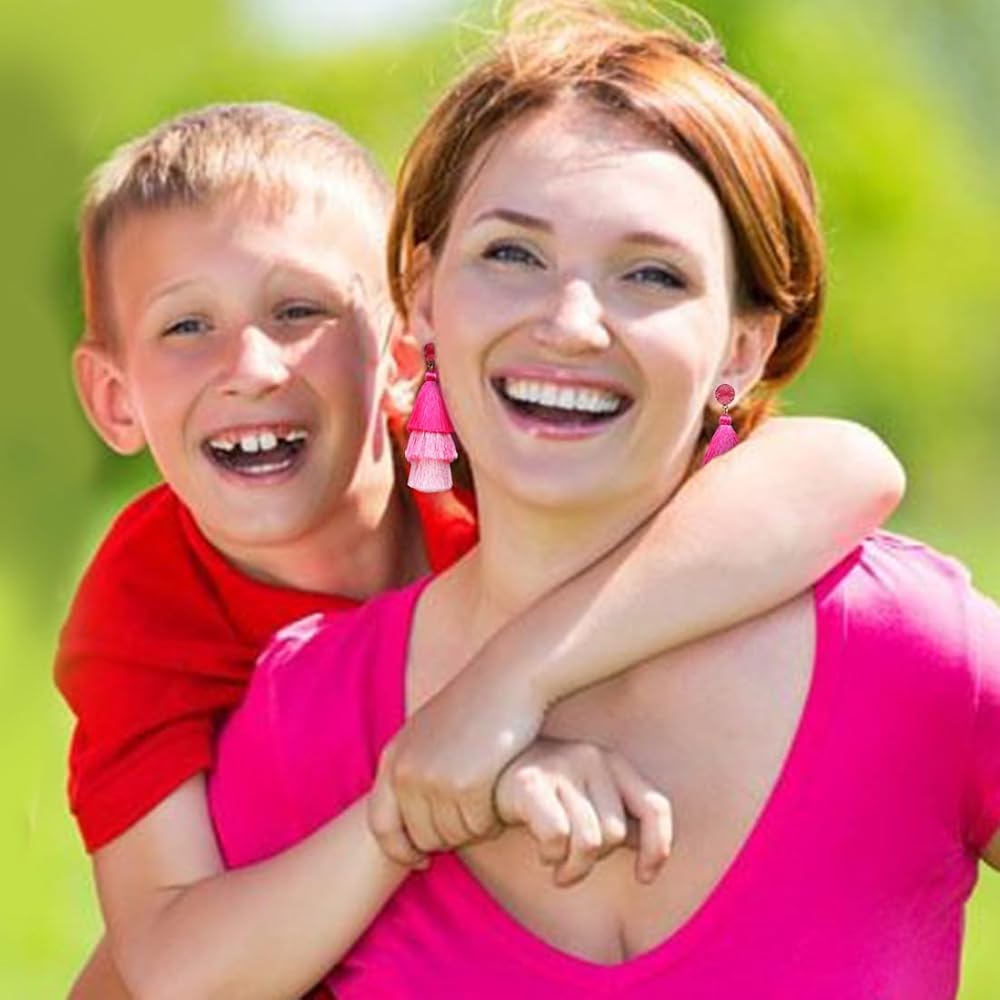 Bright colors always bring a bright and sunny mood. Under the spreading wave of pink fashion, Nyleabon brings you a 4 PAIRS hot pink earrings set with double heart dangle earrings, long rose petal earrings, bohemain style four-layer tassel earrings, and flower-shaped earrings in super bright colors, with very edgy and individual attributes.