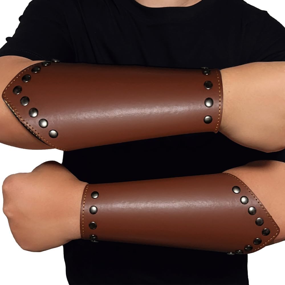 - سوار معصم من الجلد بدرع للمعصم من العصور الوسطى، دعامات رماية فامبريس، واقيات ذراع فايكنغ للرجال والنساء