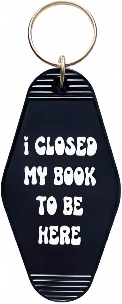 - سلسلة مفاتيح Book Lover هذه مطبوعة على جانب واحد بعبارة "لقد أغلقت كتابي لأكون هنا".