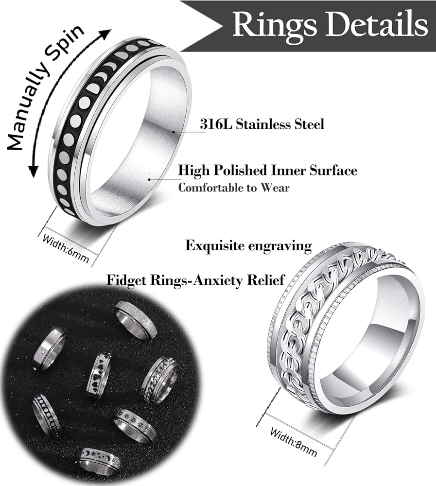 • 【ناعمة ومريحة】حلقاتنا الرائعة مصنوعة من الفولاذ المقاوم للصدأ عالي الجودة، صلب ومتين، مادة صحية، غير ضارة لجسمك؛ مصقول للغاية مع حلقات السطح الداخلي، مقاومة للخدش، وقت أطول للارتداء. تأثير تلطيخ السطح أكثر كلاسيكية وعصرية. لا يوجد أي ضجيج تقريبًا عندما يدور!