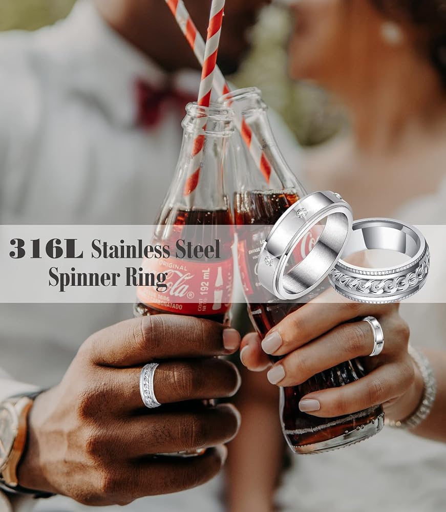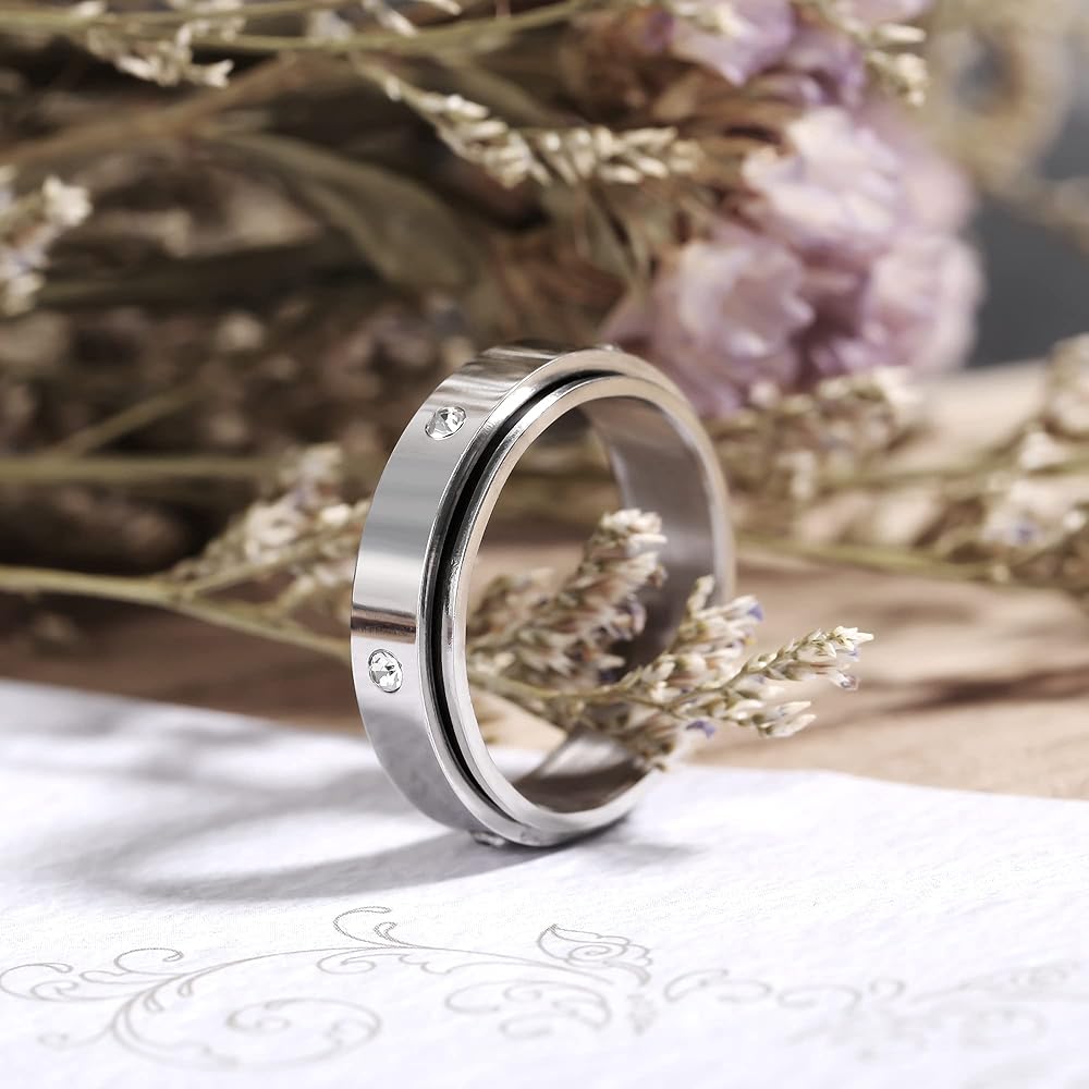 • 【حلقات دوارة فريدة للنساء】تصميم دوار، يجعلك تتغلب على التوتر وتساعد على تقليل القلق. تعزز مزاجك. مثالية لأي شخص يبحث عن طريقة غير مشتتة للانتباه لإعادة توجيه العادات السيئة أو التخلص من الطاقة المزعجة عندما لا تستطيع ذلك. يمكن أن تكون حلقات شريط التململ الرائعة والأنيقة بمثابة خاتم زوجين متطابقين، وخاتم الزفاف، وخاتم الخطوبة، وخواتم الوعد، وخواتم الفرقة اليومية.