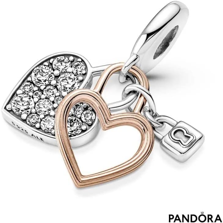 سحر القلب المتلألئ: يتميز حلية PANDORA ذات المغزى هذه بصورة ظلية لقلب مطلي بالذهب الوردي عيار 14 قيراط والذي يحدد مجموعة من الفضة الإسترلينية على شكل قلب مع زركونيا مكعبة رائعة القطع
