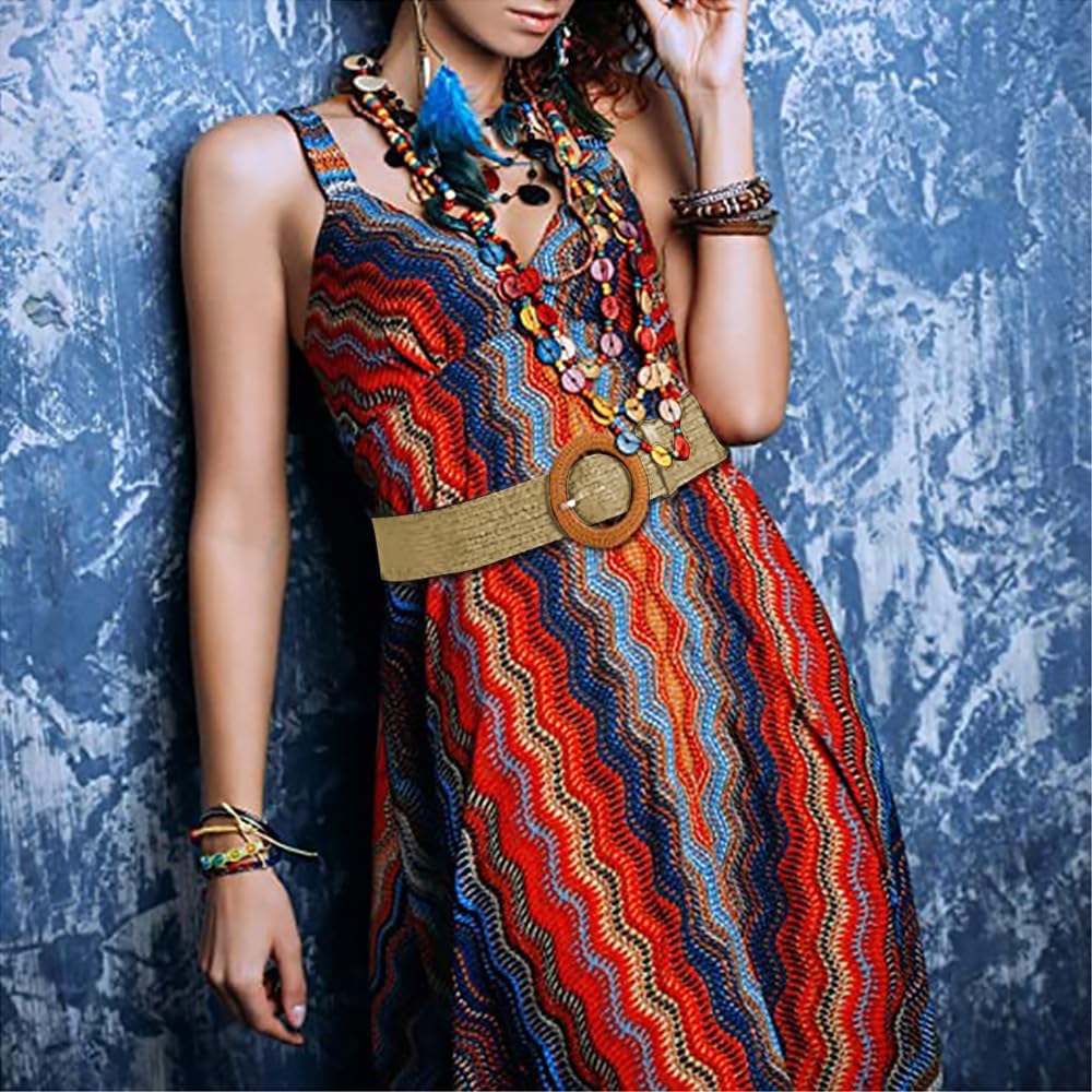 حزام من القش على الطراز البوهيمي: مصنوع من البوليمر والبلاستيك عالي الجودة، كل حزام خصر مضفر مرن ناعم الملمس وخفيف الوزن، مريح في الارتداء ويغطي خصرك بشكل جيد، مما يظهر أناقتك وسحرك في مناسبات مختلفة.