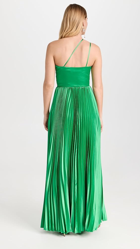 • يعمل حسب الحجم. ، مصمم بشكل ظلي على شكل حرف A وطول طويل للغاية. تبرز أحزمة الكتف الزاويّة خط عنق الكتف الواحد. يتميز قماش Charmeuse بلمعان لامع ويد ناعمة.