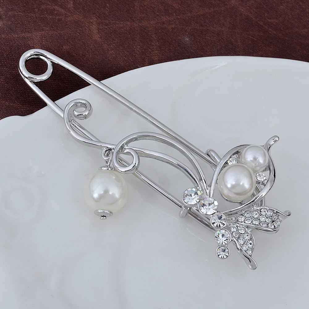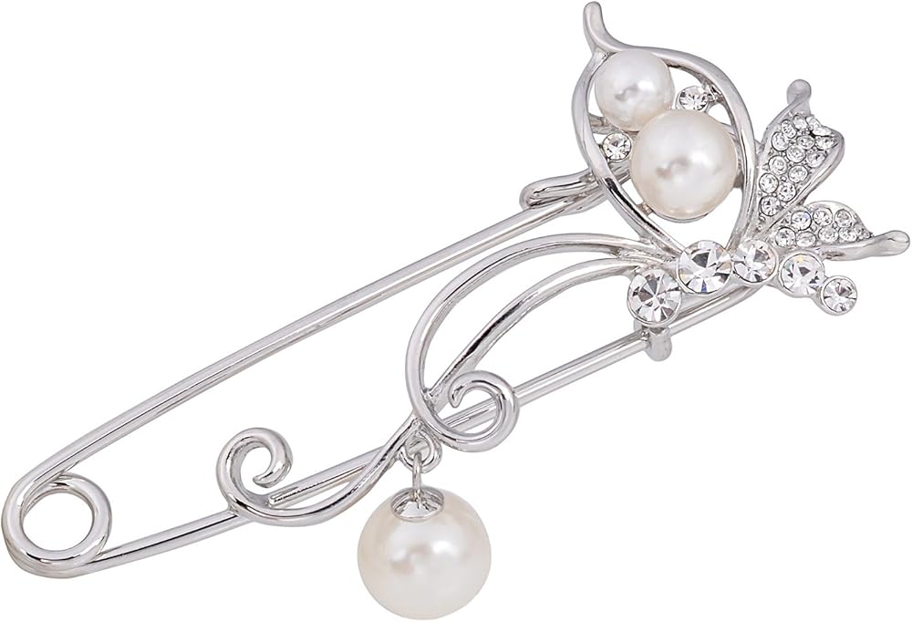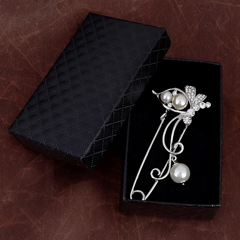 OBONNIE كريستال فراشة دبوس الأمان بروش مع قلادة اللؤلؤ سترة قبعة وشاح زهرة دبابيس المجوهرات