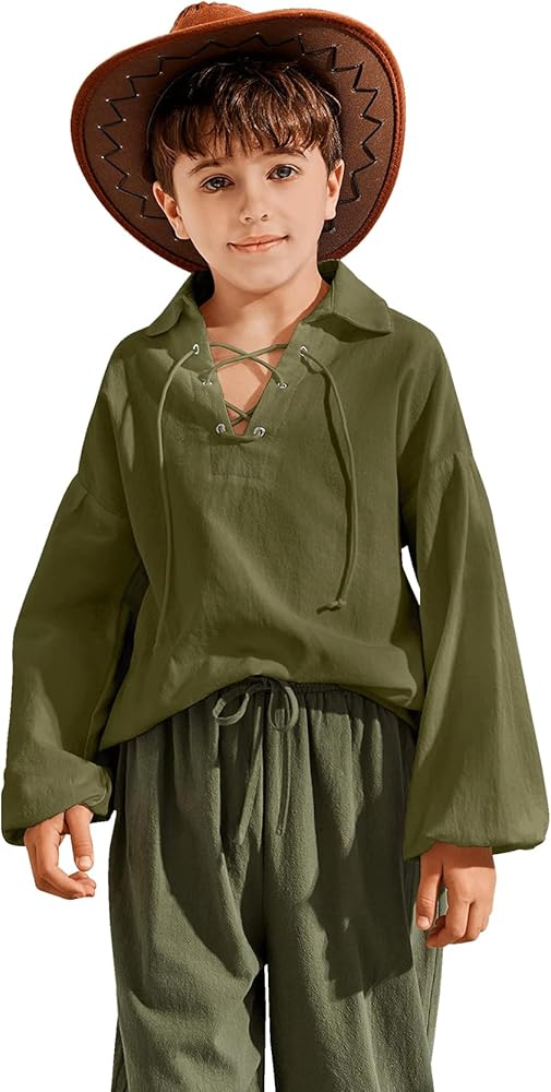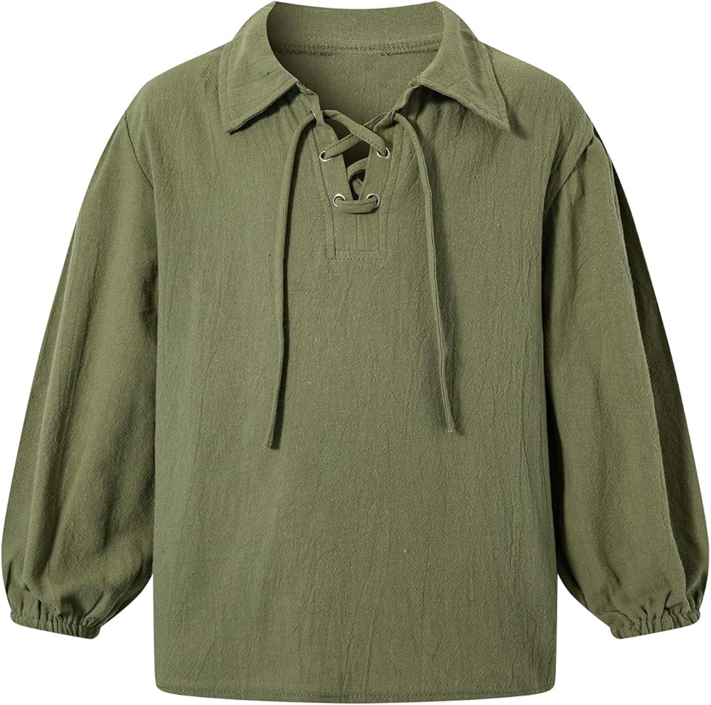 قميص قرصان للأطفال من Fantasy Era زي عصر النهضة القرون الوسطى بأكمام طويلة وأربطة للأولاد ملابس غير رسمية للهالوين