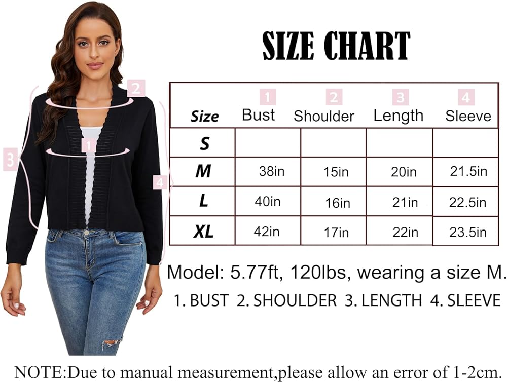 Black cardigan for women size and color: The long sleeve cardigan for women is black color, classic fitted, cropped design. This black cardigan sweaters for women is design for most body shapes. Our long sleeve open front crop cardigan have 3 sizes( M, L,XL) and 3 colors(white,black and pink) to choose. Please carefully refer to size chart in the last picture before ordering