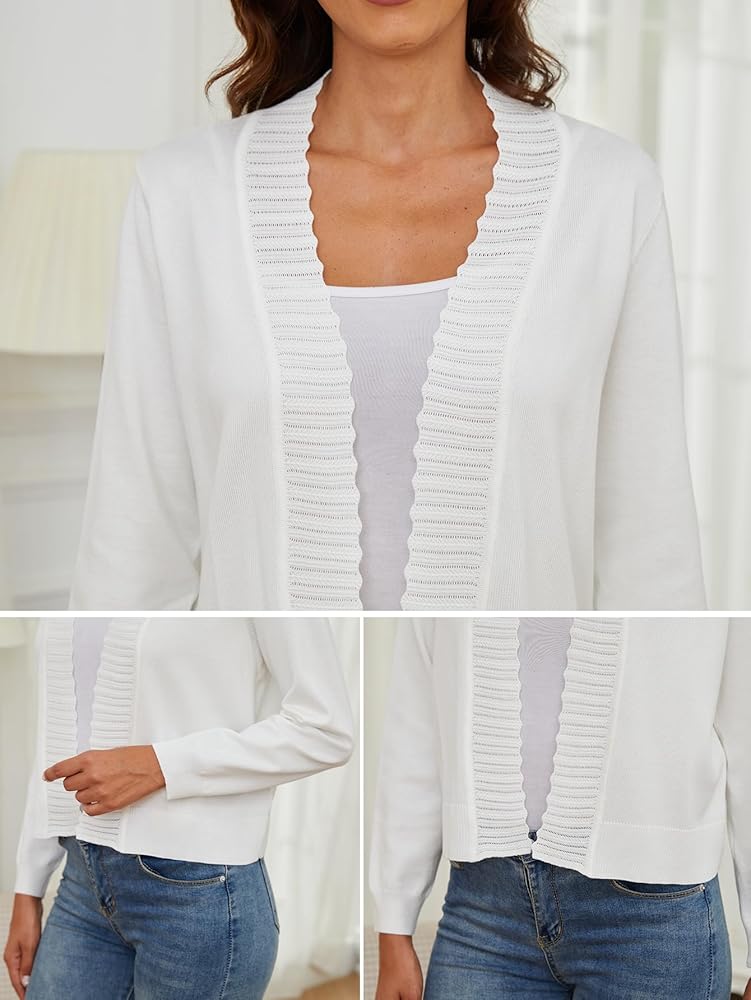 سترات نسائية مفتوحة من الأمام تتناسب جيدًا: سترة نسائية مفتوحة من الأمام يمكن ارتداؤها بسهولة مع التيشيرتات والقمصان والقمصان بدون أكمام والتنورة والسراويل القصيرة والفساتين والسراويل الضيقة والجينز والسراويل الطويلة والأحذية الرياضية والكعب العالي أو الصنادل. يمكنك أيضًا مطابقة أي شيء تريده بالداخل. مادة السترة النسائية المفتوحة من الأمام تتنفس بشكل جيد للغاية، وليست ساخنة جدًا بحيث لا يمكن ارتداؤها في مكتب مكيف الهواء في الصيف. يمكنك أيضًا ارتداء هذه السترة ذات الأكمام الطويلة في الصباح البارد أو في المساء المنعش