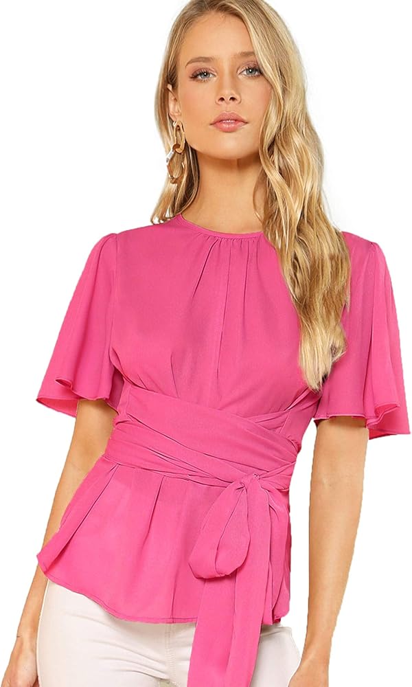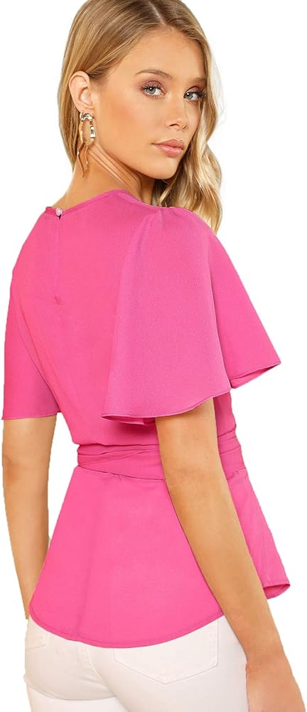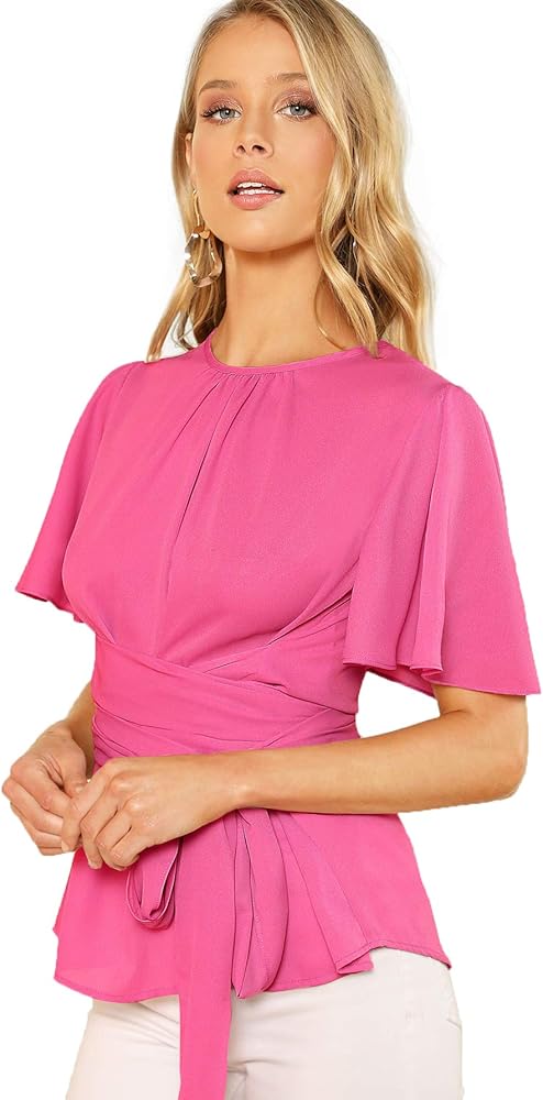 بلوزة نسائية من الشيفون كاجوال بأكمام قصيرة من Romwe