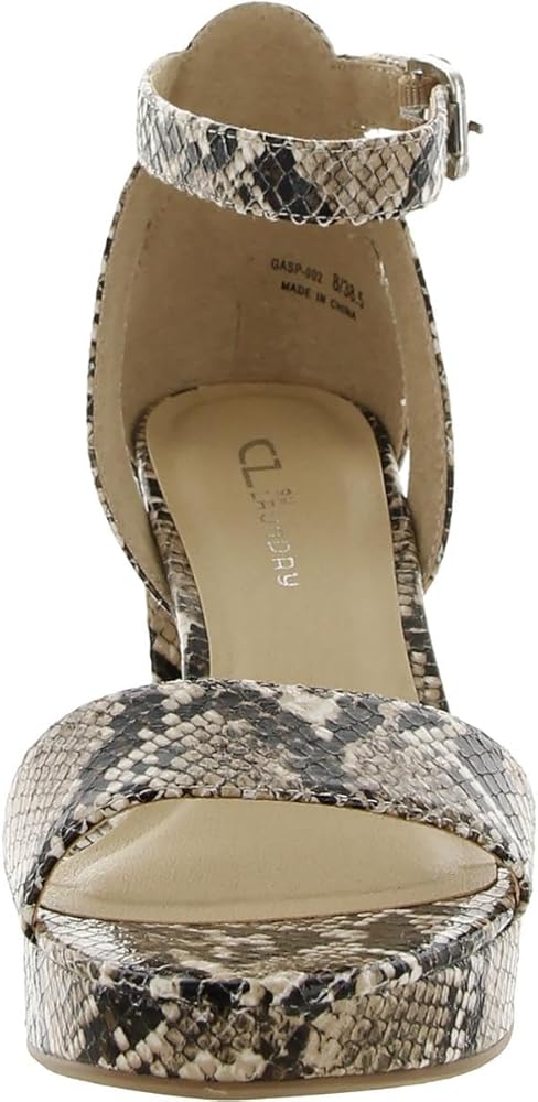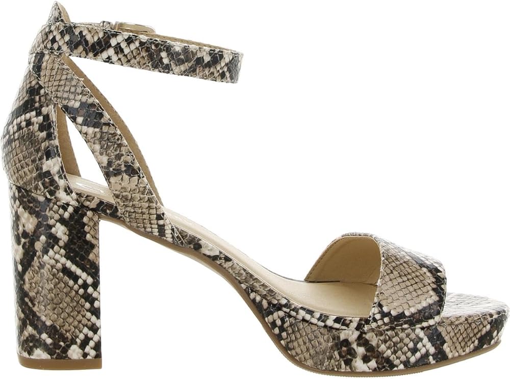 Open toe platform sandal with one band upper, chunky block heel, and ankle strap