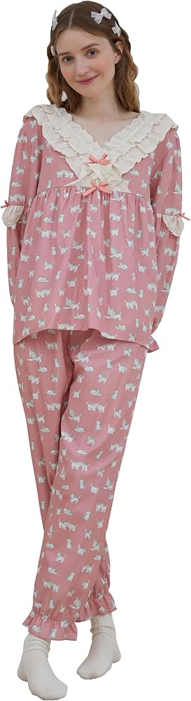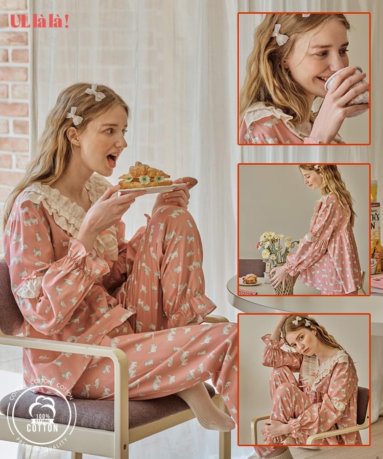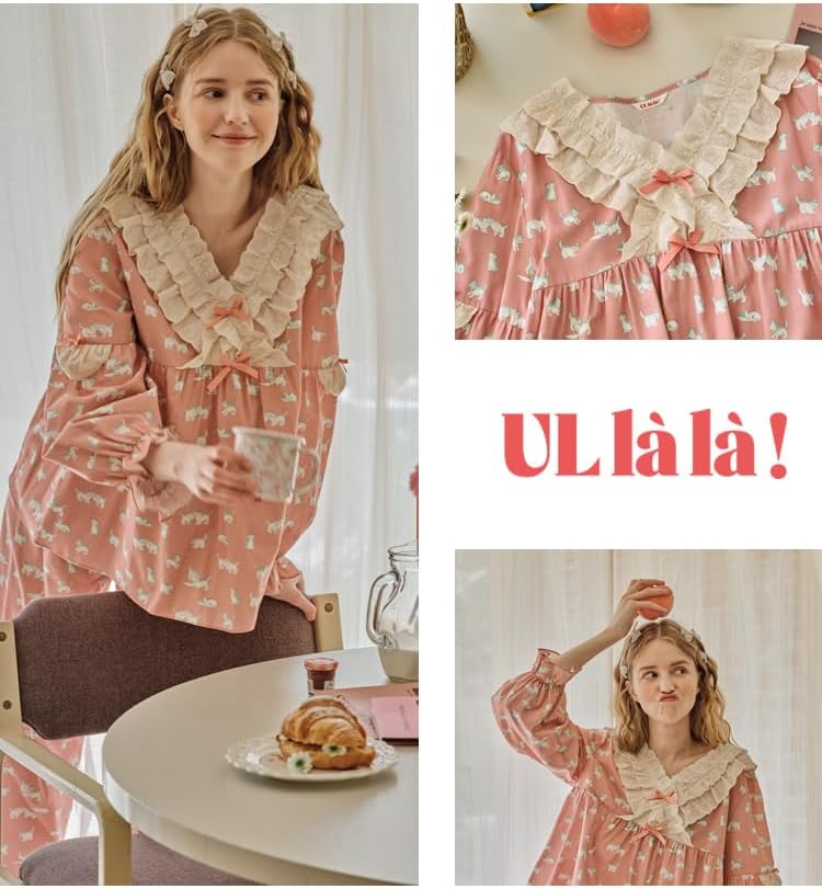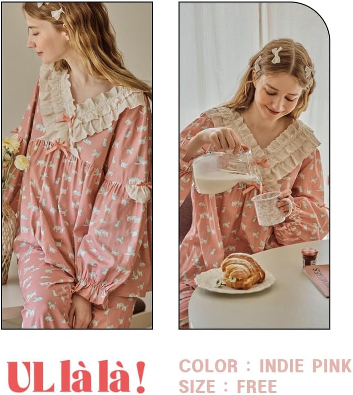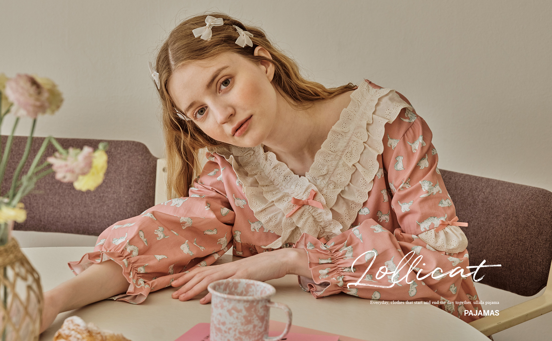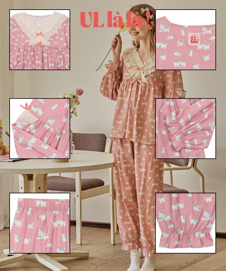 التصميم والميزات: اللون الوردي المستقل وطباعة القط الصغير الجري وحدها تجلب مظهرًا جميلًا إنها بيجامة من قطعتين. يتميز التصميم برباط يتداخل مع خط الرقبة، ودانتيل يدخل في الأكمام على شكل نصف قمر، وشريط زهري فوقه.
