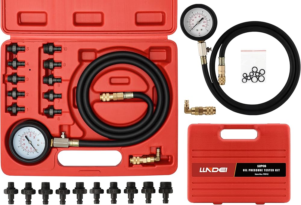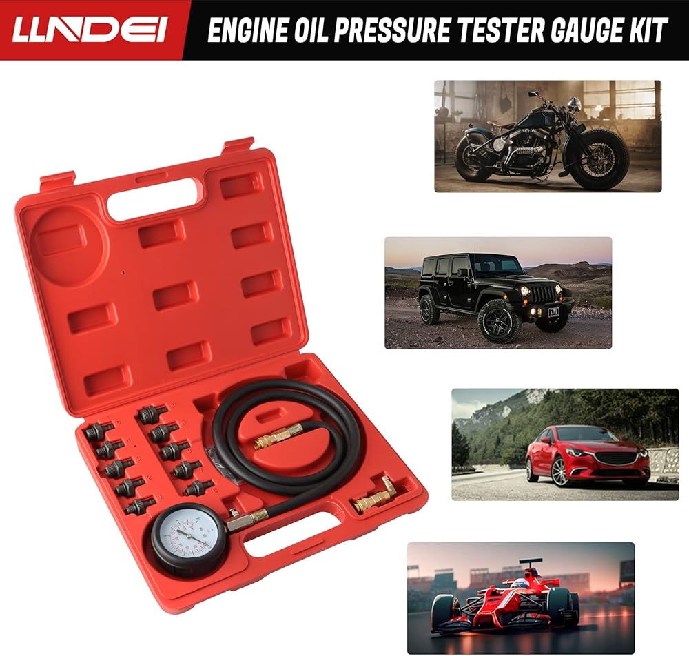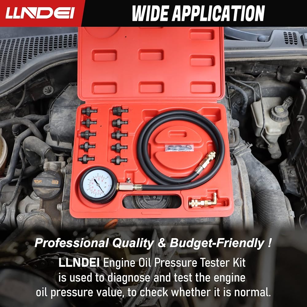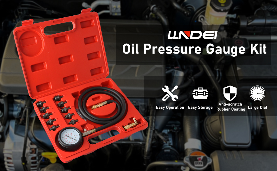 🚗OIL PRESSURE GAUGE KIT: The LLNDEI oil pressure gauge kit is used to test the engine oil pressure value, and quickly judge the oil pipe leakage and engine wear by comparing it with the reference standard provided by the supplier, so as to confirm whether the oil pressure gauge on the dashboard and sensor is damaged, and no longer rely on the dashboard light.