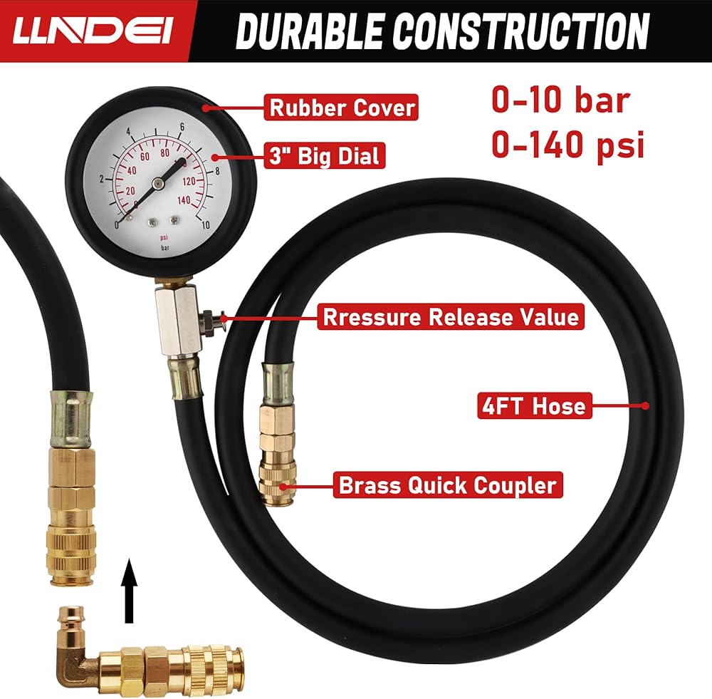 مجموعة قياس ضغط الزيت من LLNDEI، مجموعة اختبار ضغط زيت المحرك 0-140 رطل لكل بوصة مربعة لقياس ضغط الزيت الميكانيكي ATVs والشاحنات والسيارات (11 تركيبًا)