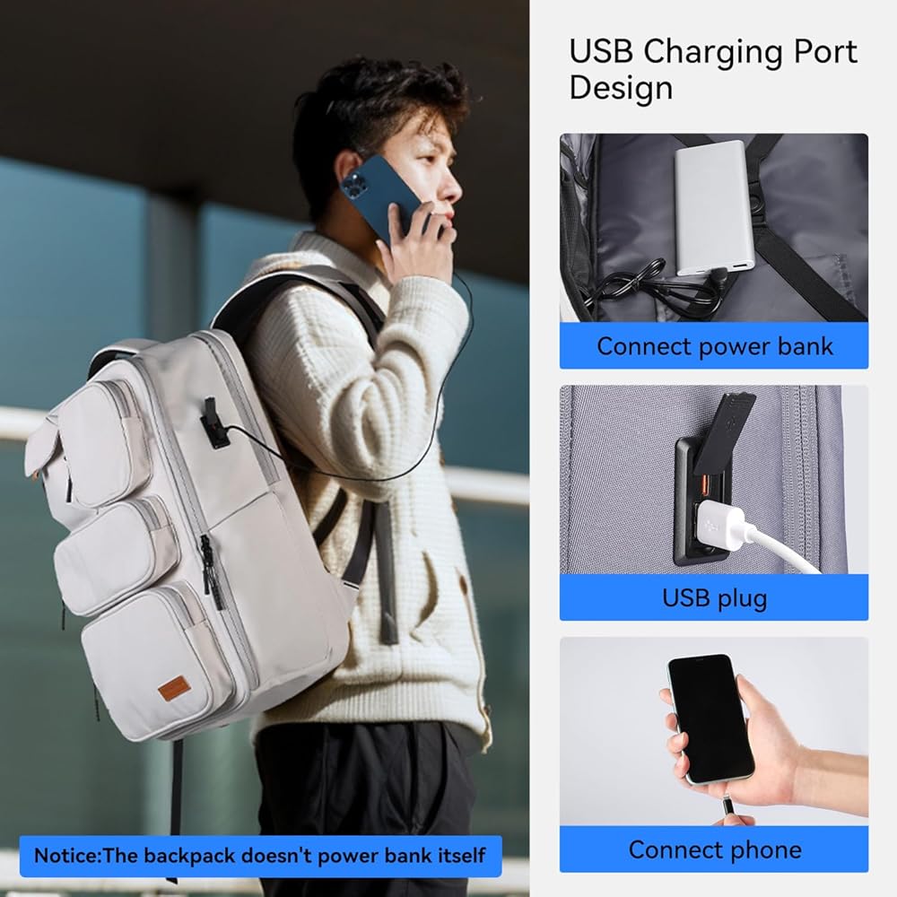★ تصميم منفذ شحن USB: تتميز حقيبة ظهر الكمبيوتر المحمول بمنافذ USB ونوع C، مما يوفر خيارات شحن متعددة لأجهزتك. سواء كنت بالخارج في الطبيعة أو في رحلة، توفر هذه المنافذ حلول شحن مريحة، مما يضمن التوافق مع الأجهزة المختلفة. من المهم ملاحظة أنه على الرغم من أن حقيبة السفر هذه لا تولد الطاقة، فقد تم تصميم هذه المنافذ فقط للوصول إلى الشحن بدون متاعب.