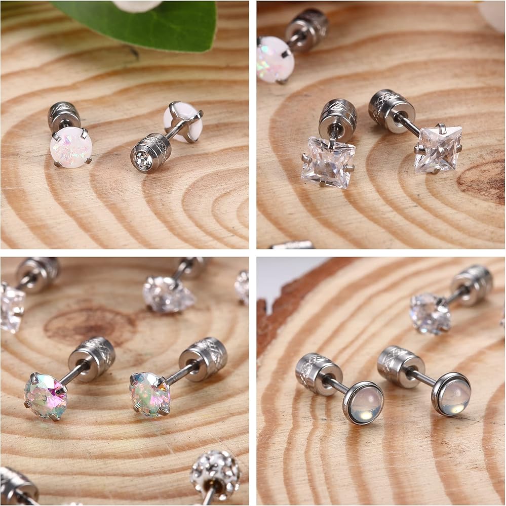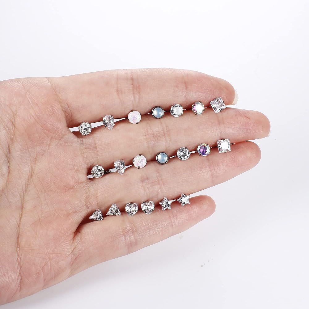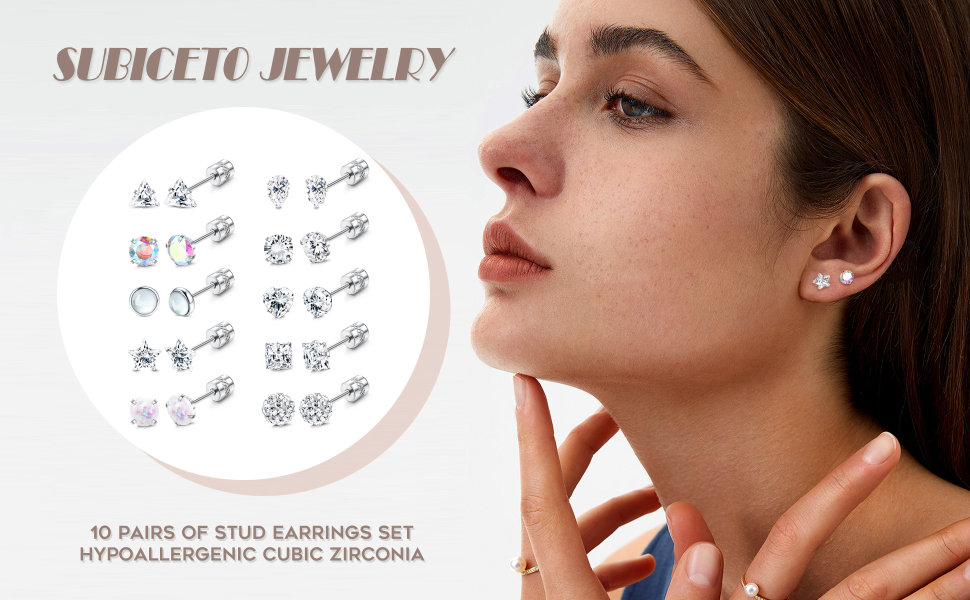 مجموعة أقراط زركونيا مكعبة: سوف تحصل على 10 أزواج من الأقراط المرصعة من الفولاذ المقاوم للصدأ بأنماط مختلفة. هناك أقراط مرصعة على شكل قلب من الزركونيا الغضروف، وأقراط أوبال لولبية خلفية، وأقراط كرة زركونيا، وأقراط دائرية تشيكوسلوفاكيا، وأقراط مرصعة زركونيا مربعة، وأقراط مسمار زركونيا مكعبة، أقراط من حجر القمر والمزيد.