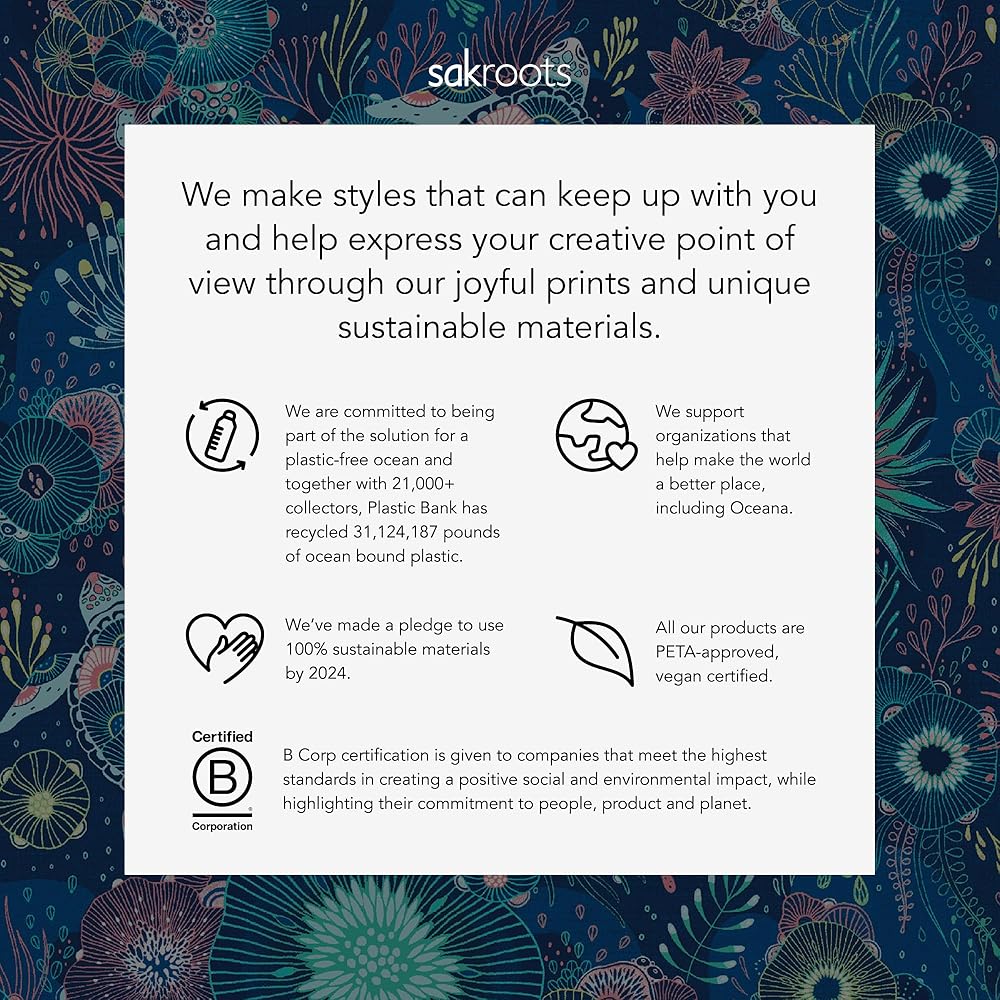 ART FOR A CAUSE: Sakroots is a free-spirited lifestyle brand featuring exclusive artist prints mixed with craft details. All bags are vegan-certified and our prints support Oceana, whose mission is to protect and restore the world's oceans