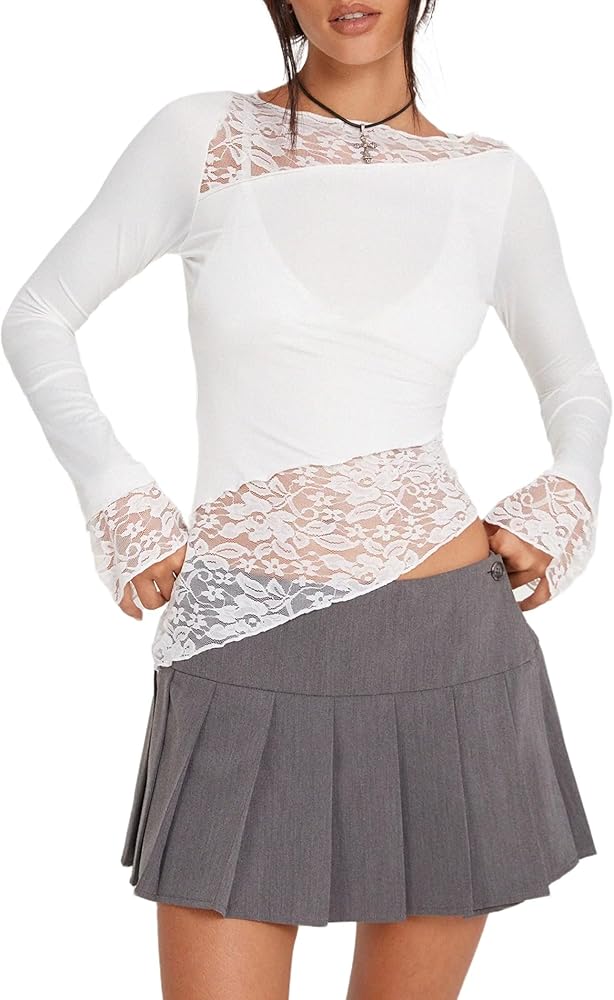 تي شيرت نسائي عالي الجودة: هذا القميص ذو الأكمام الطويلة من الدانتيل مصنوع من 90% بوليستر، 10% ألياف لدنة، نسيج مطاطي وجيد التهوية، خفيف الوزن، ناعم ومريح. قمصان للخروج للنساء، طراز كاجوال وY2K، قمصان أساسية للتمرين للنساء، قمصان قصيرة مثيرة ذات قصة ضيقة، تي شيرت دانتيل برقبة قارب، تي شيرت برقبة دائرية صلبة. قميص قصير بأكمام طويلة من الدانتيل للنساء، قمصان دانتيل Y2K للنساء، قميص بأكمام طويلة من الجرونج الخيالي، قميص شفاف للنساء.