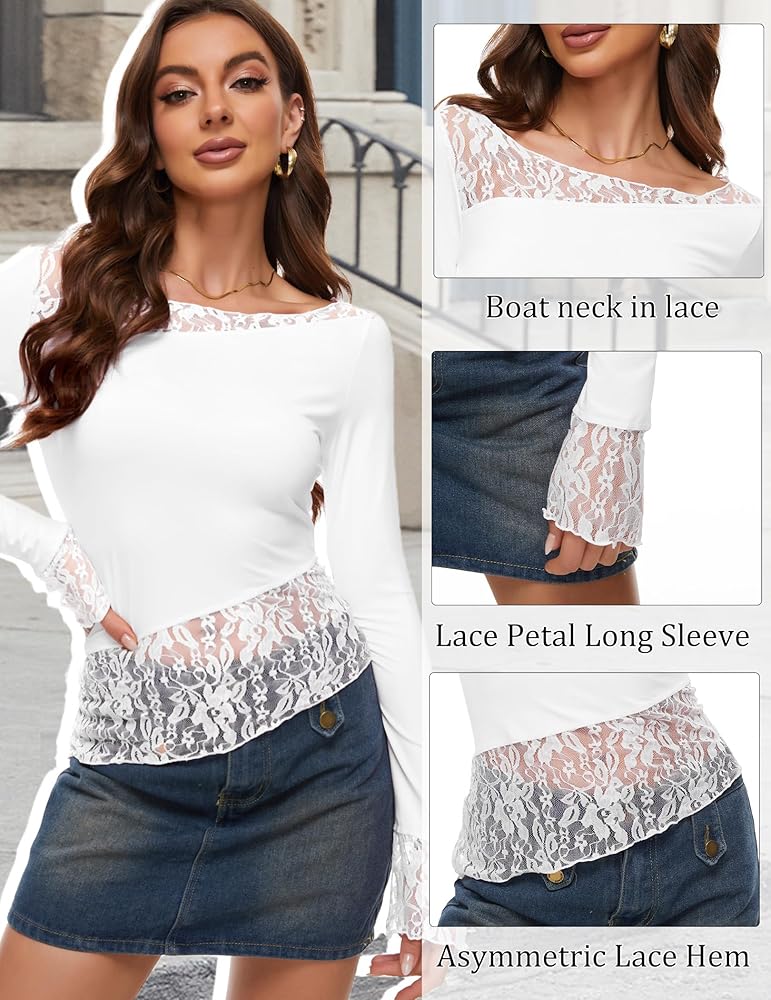 تصميم عصري: تتميز هذه القمصان ذات الأكمام الطويلة بأكمام طويلة واسعة من مادة الدانتيل، وخط عنق على شكل قارب وحاشية مدببة غير متماثلة وألواح من الدانتيل مع تفاصيل أوفرلوك. يجب اقتناؤه لأزياء 2024. يبقيك عصريًا وجذابًا وملفتًا للنظر في أي في أي وقت وفي أي مكان. ابق على أحدث صيحات الموضة مع الجزء العلوي من الدانتيل