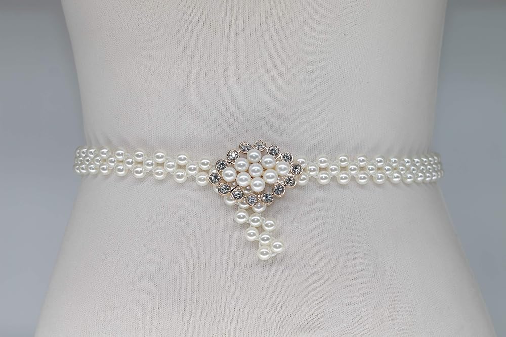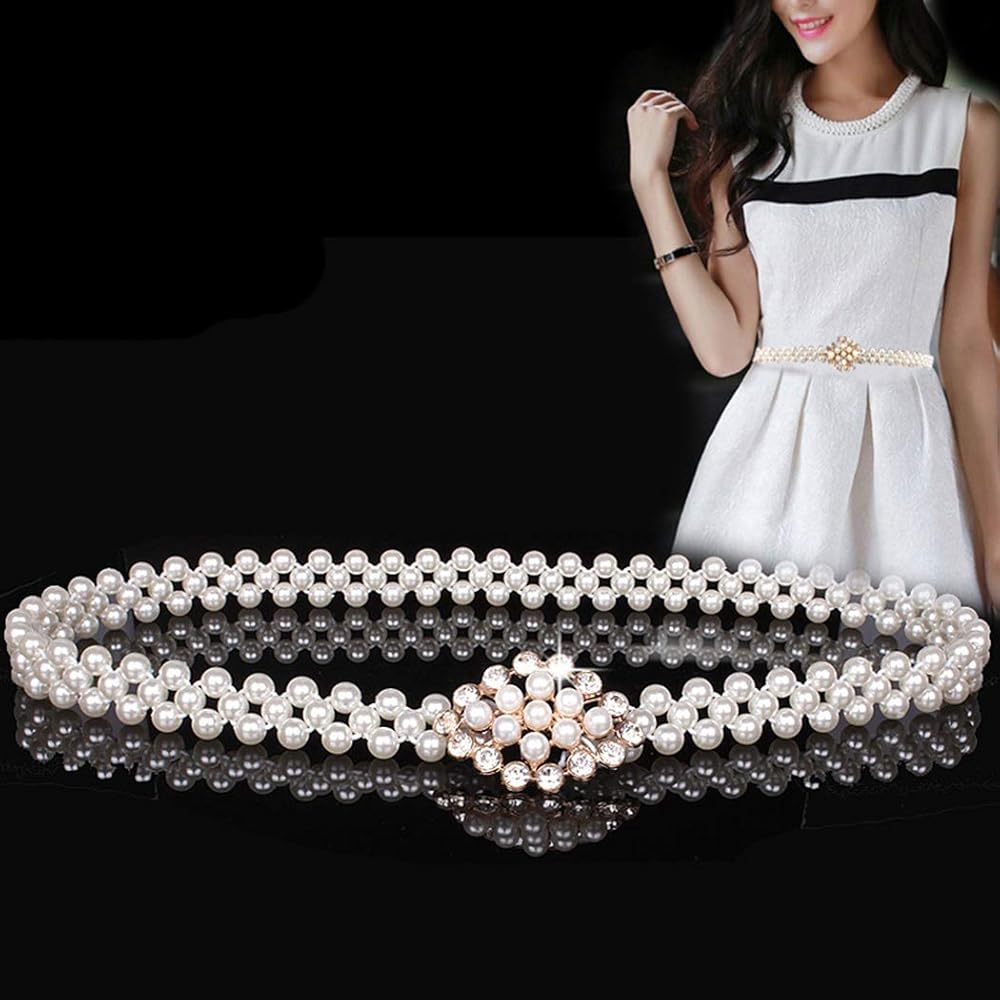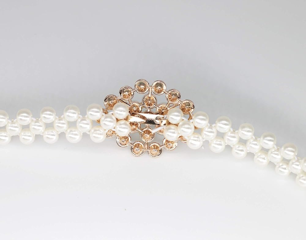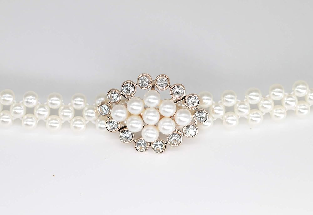 - المواد: حزام مطاطي لؤلؤي/الإبزيم: معدن مركب/الزخرفة: لؤلؤ وحجر الراين