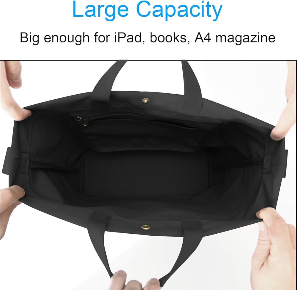 • تصميم فريد: طراز كاجوال، سعة كبيرة. إنها كبيرة بما يكفي لحمل المحفظة، والآيباد، والكتب، ومجلة A4، والدفتر مقاس 13.5 بوصة، ومستحضرات التجميل والمظلة. تجعلك تبدو ليس فقط عصريًا، ولكن أيضًا كاجوال جدًا، ويمكنك مطابقة أي ملابس.