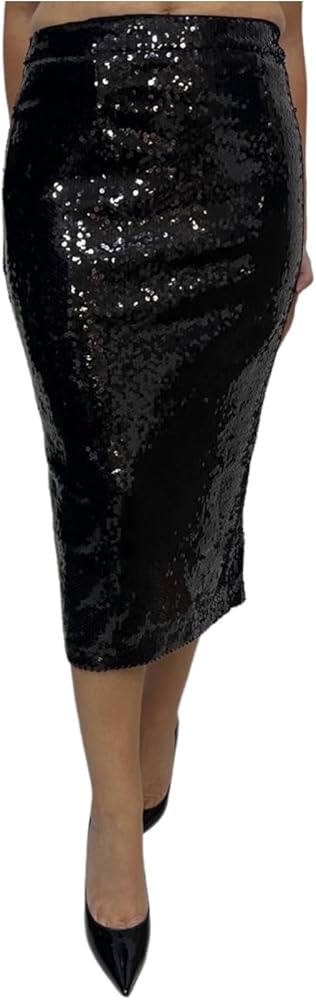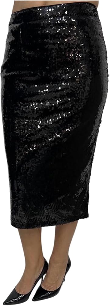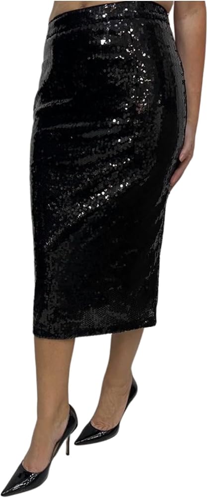 Elevate your style with the CAPPUCCINI Women's Sequins High Waisted Midi Skirt, a stunning and glamorous piece that exudes sophistication. Adorned with shimmering sequins, this skirt radiates elegance and dazzles with its glamorous allure. The high-waisted design accentuates the waistline, offering a chic and flattering silhouette that complements various body shapes. With a midi skirt length falling below the knee, it exudes sophistication and elegance, perfect for formal events, parties, or any special occasion where you want to shine. Designed with a comfortable lining, this sequined skirt ensures you feel at ease while flaunting its glamorous appeal. As a statement piece, it effortlessly adds an element of elegance and sophistication to your outfit, making you stand out with its stunning sequin detailing. Available in a range of colors, you can choose the shade that best matches your personal style and preferences. This skirt allows versatility in styling; pair it with different tops and accessories to create various looks, from classic and elegant to trendy and chic. Embrace elegance and glamour with the CAPPUCCINI Women's Sequins High Waisted Midi Skirt, a captivating and versatile garment that ensures you make a bold and sophisticated impression with its stunning sequin embellishments and chic high-waisted design.