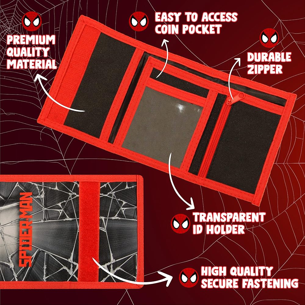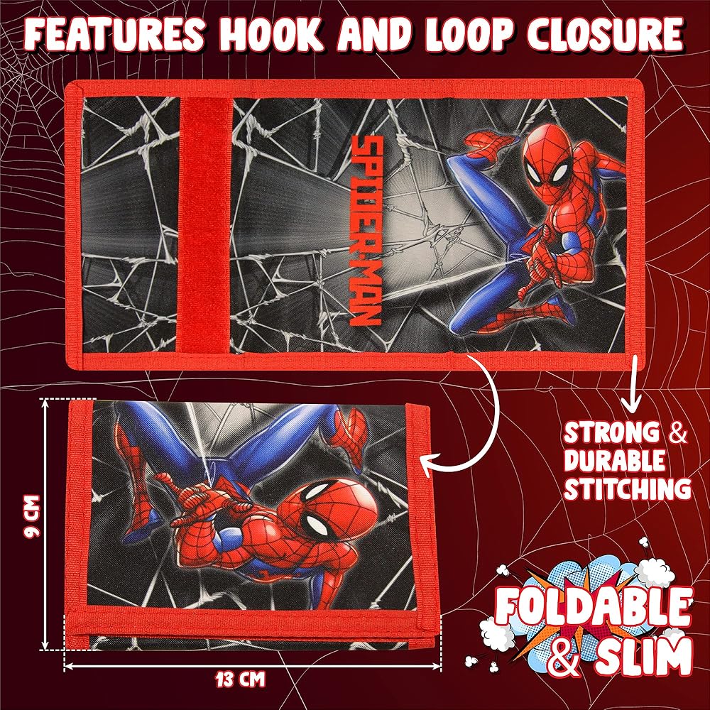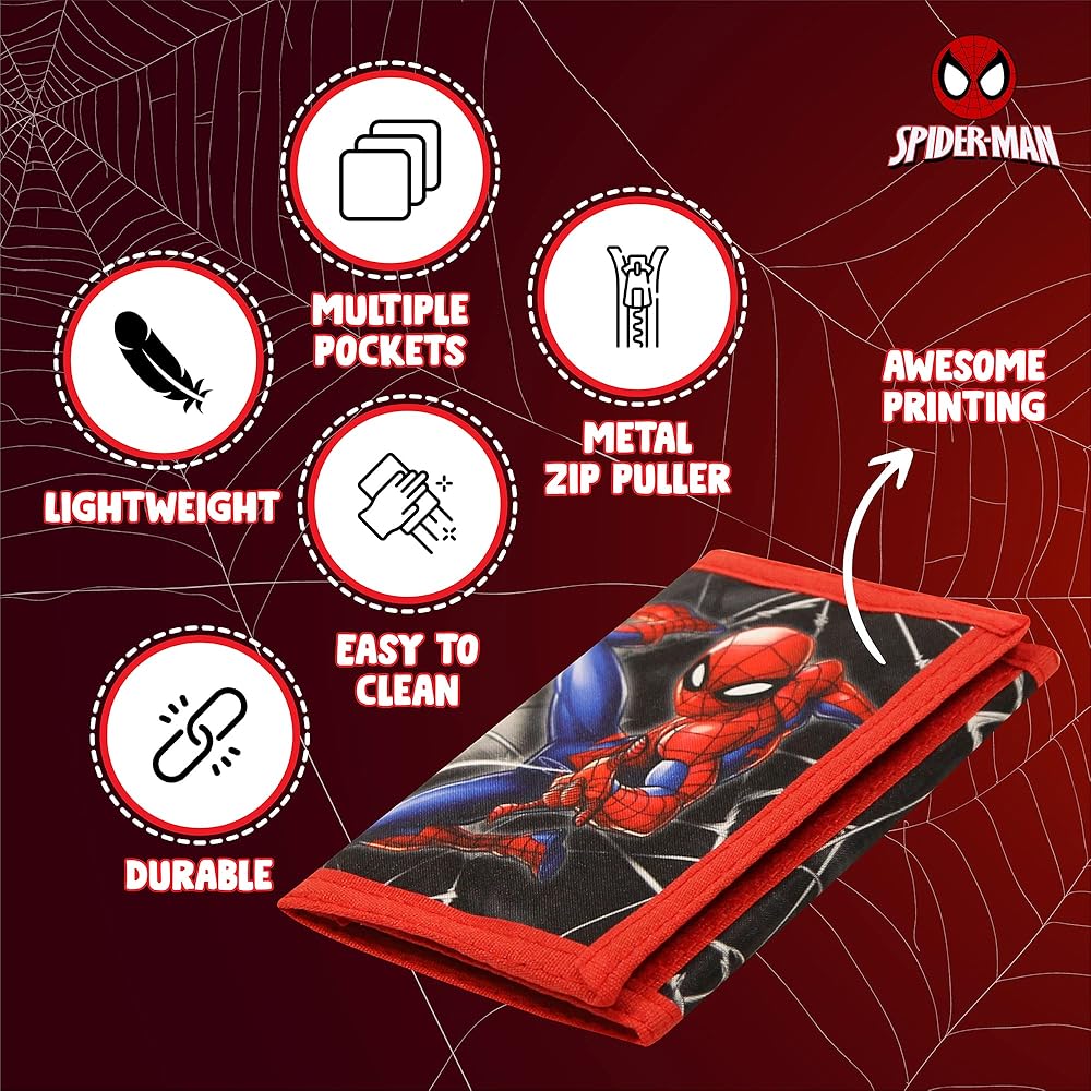 هذه المحفظة للأولاد يجب اقتناؤها لأي من محبي سبايدرمان الصغار. مثالي للأطفال، يتميز هذا التصميم ثلاثي الطي بفتحات متعددة للبطاقات ونافذة شفافة لبطاقة الهوية وجيب للعملات المعدنية للحفاظ على جميع ضرورياتهم منظمة.