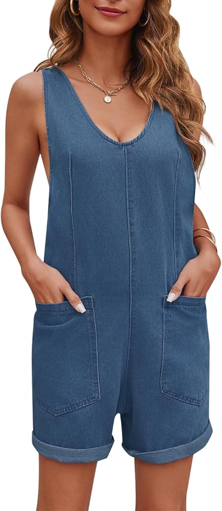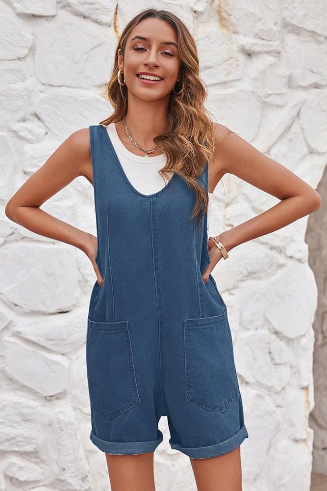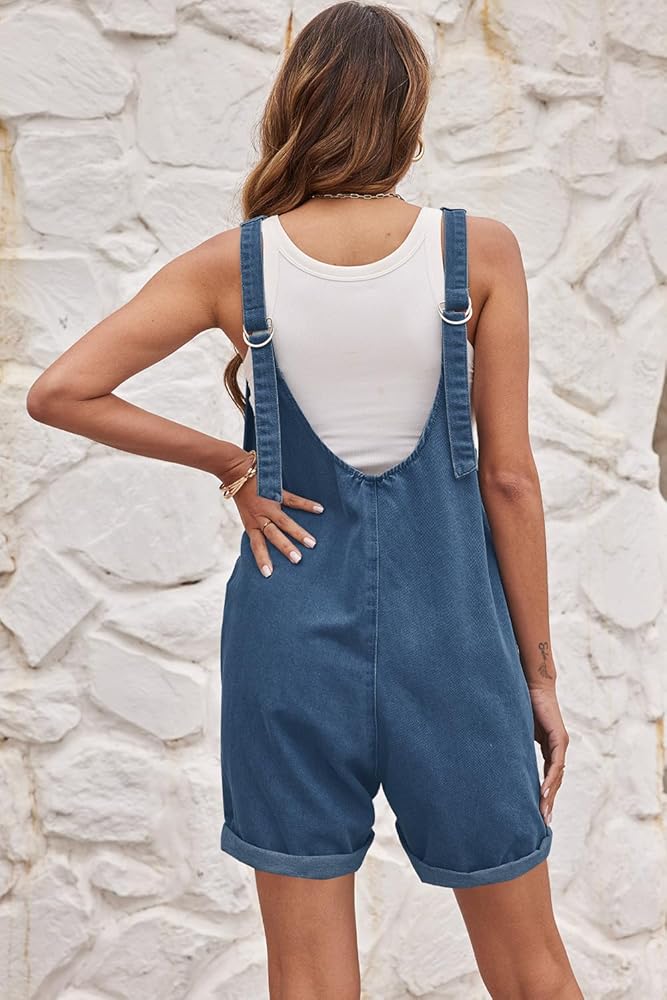 ملاءمة وراحة مريحة: ثوب قصير من الدنيم للسيدات مصمم بمقاس فضفاض قليلاً لتوفير الراحة دون أن يبدو فضفاضًا للغاية. جيوب كبيرة الحجم وأرجل على شكل حريم منسدلة توفر المزيد من الراحة والراحة.