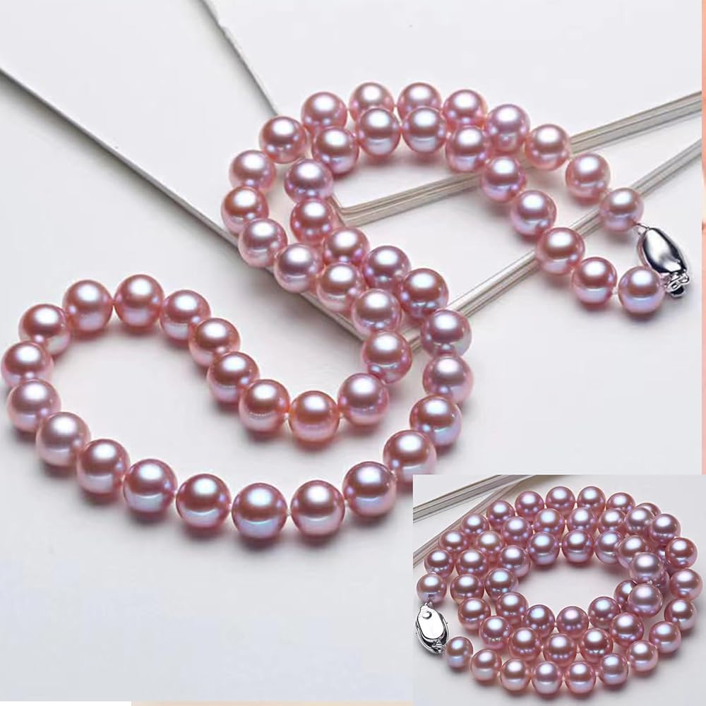 Simple yet elegant, this stunning pearl set features AAAA grade freshwater pearls ranging in size from 5mm to 9mm, arranged in ascending order. The set includes a pair of pearl stud earrings and a beautiful pearl necklace with a sterling silver clasp. This genuine pearl necklace set is perfect for fashion wear, weddings, dinners, birthdays, class reunions, and makes a stylish gift. Made from cultured pearls, the white and pink pearl necklace set is a timeless addition to any jewelry collection. The light and delicate Y2K style design is perfect for women and girls of all ages. This pearl jewelry set can be worn by yourself or as a gift for a loved one, adding a touch of sophistication to any outfit. Pearls are organic gemstones that require specialized care. Pearls should not come into contact with substances such as household cleaners, perfumes, cosmetics and various hair care products or they will deteriorate. A good rule of thumb is that pearls are the "last thing you put on" when dressing and the "first thing you take off" when you get home. Pearls have a soft surface, and when not worn regularly the surface layer can develop pearl powder, which makes them easy to damage, so store them in a well-made jewelry box for safekeeping
