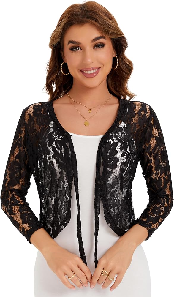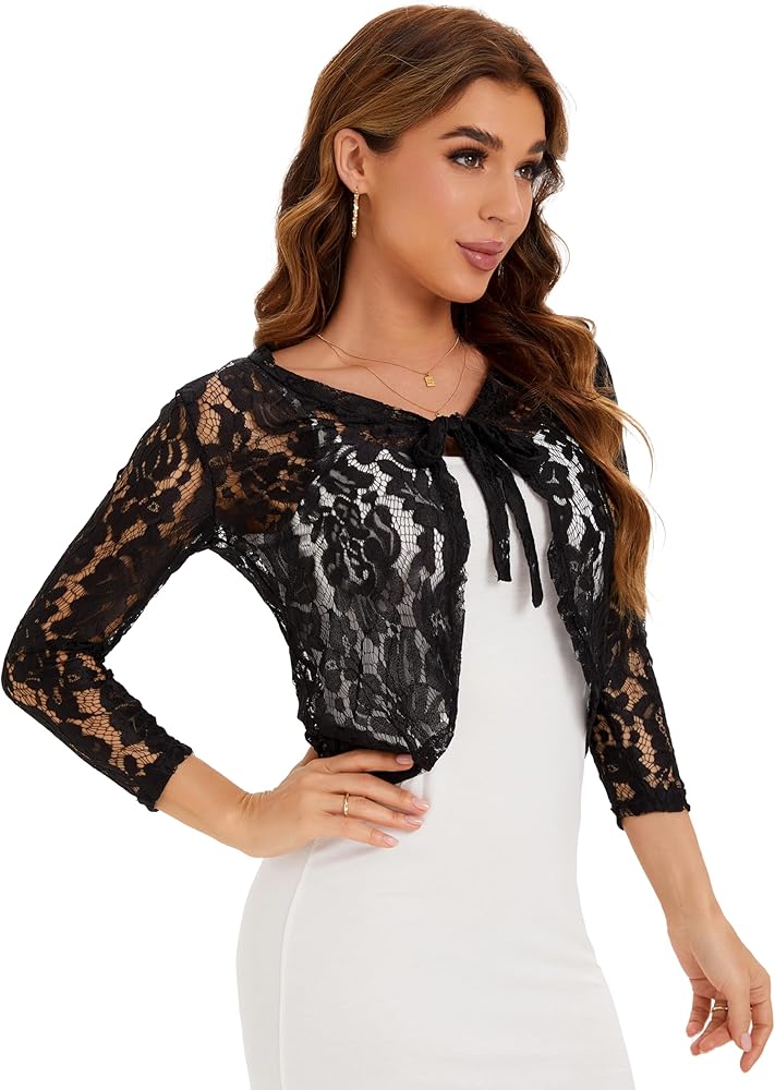 سترة مفتوحة من الدانتيل من الأمام، تتميز بأكمام طويلة، وربطة أمامية، ومجوفة من الخارج، وألوان ثابتة