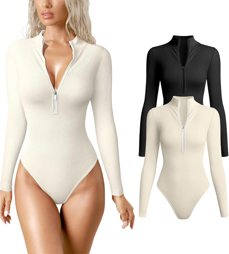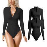 🎀【سميكة وغير شفافة】: هذه البدلة المثيرة ذات الأكمام الطويلة ذات الرقبة الطويلة والمزودة بسحاب مصنوعة من مادة قطنية بسمك 250 جرام، والتي يمكن أن توفر لك الدفء دون أن تبدو شفافة. يتميز بتصميم مضلع للتحكم في البطن والذي يحدد منحنياتك وينحت جسمك.