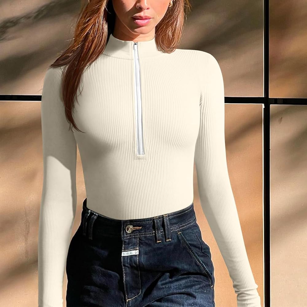 🎀【نسيج فاخر】: هذا السالوبيت المثير ذو الرقبة الطويلة والأكمام الطويلة مصنوع من نسيج ناعم ومرن للغاية. يوفر لك تجربة ارتداء مرنة للغاية ومريحة وجيدة التهوية. يمكن للنسيج المرن القابل للتمدد في 4 اتجاهات أن يساعدك على تشكيل جسمك.