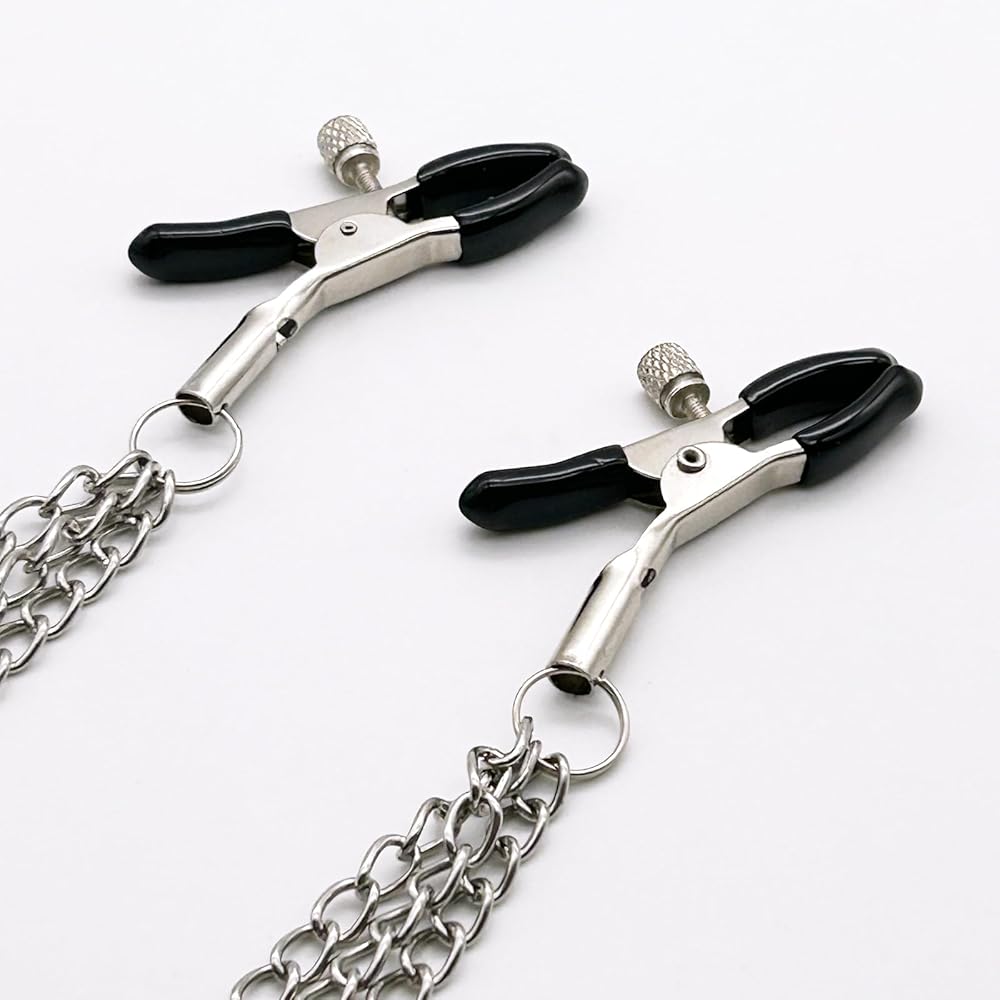 These nipple clamps with chain are easy to use and suitable for both him and her.
